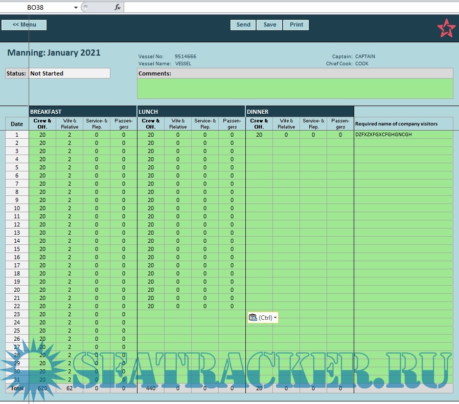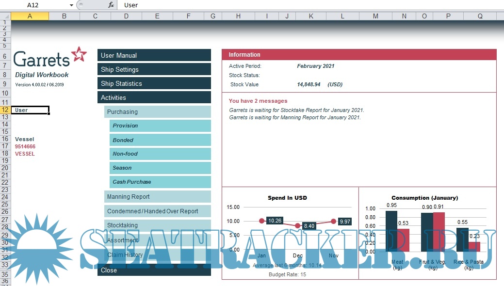 - when open 1st time your WORKBOOK (WB) YOU WILL BE PROMPTED TO ENTER IMO NUMBER then enter "9514666"