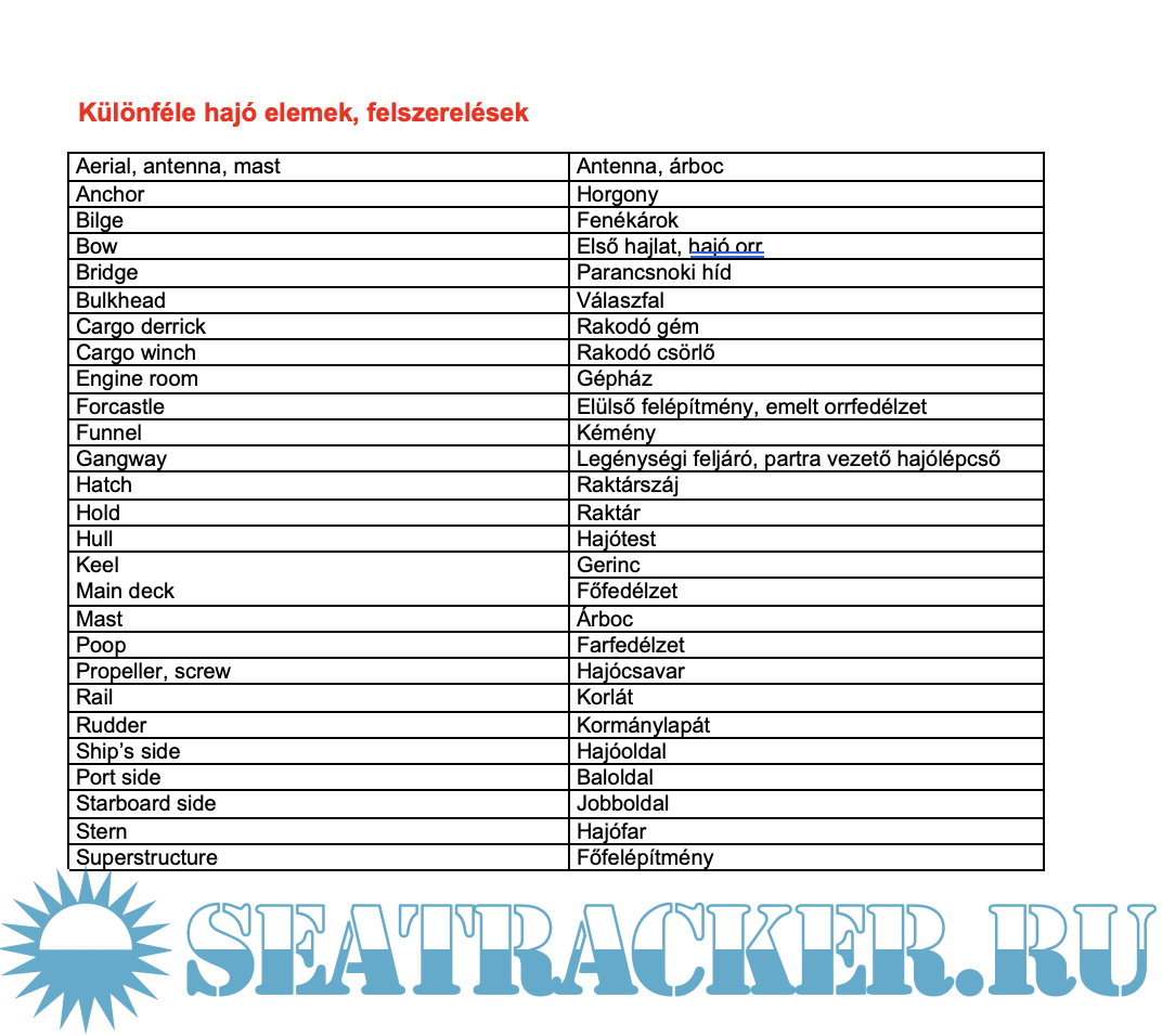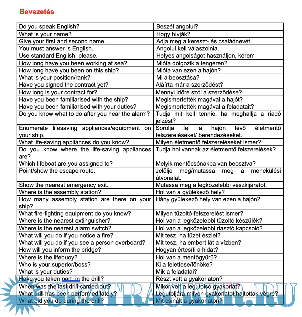 Description: A collection of English-language maritime terminology on the subject of personal survival techniques, crowd control, fire protection and first aid.