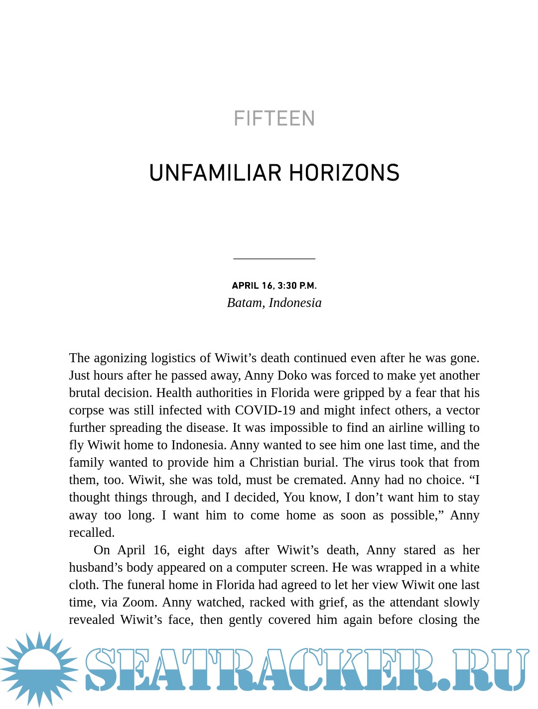 Among the travelers there is a retired American school superintendent on a dream vacation with his wife of fifty-six years, on a personal quest to see Machu Picchu. There is an Argentine psychologist taking this trip to celebrate her sixty-fourth birthday with her husband, though she finds herself fretting in her cabin on day one, trying to dismiss her fears of what she’s hearing on the news. There is an Indonesian laundry manager who's been toiling on Holland America cruise ships for thirty years, sending his monthly paycheck to his family back home.