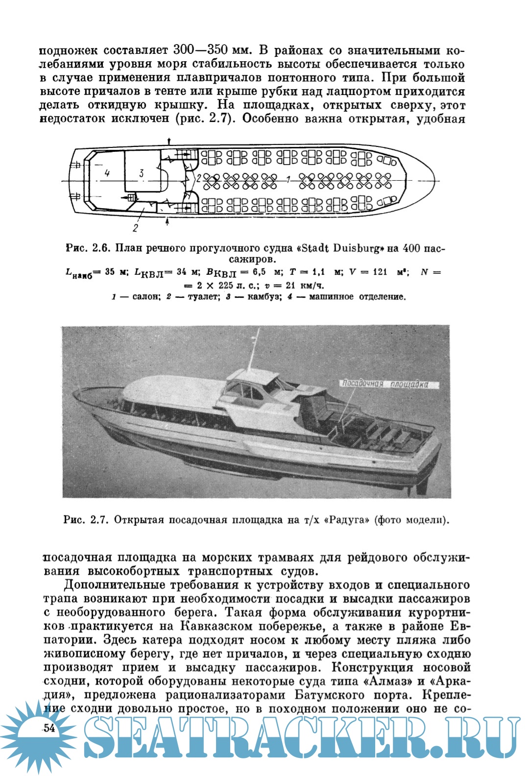 Год выпуска: 1975 Язык: Русский Автор: Леви Борис Захарович Издательство: Судостроение Формат: PDF Качество: Отсканированные страницы Количество страниц: 324 Описание: Книга содержит систематизированный материал, обобщающий опыт проектирования, строительства и эксплуатации водоизмещающих пассажирских судов, предназначенных для обслуживания прибрежных линий и переправ. Значительное внимание уделено компоновке таких судов, определению их основных параметров, вопросам остойчивости, непотопляемости, ходкости, качки, борьбе с шумом, особенностям конструкций корпуса, а также эксплуатационно-экономический требованиям. Наряду с однокорпусными судами рассмотрены некоторые особенности катамаранов. Книга рассчитана на читателей, связанных с проектированием, постройкой и обслуживанием пассажирских судов. Она также может использоваться студентами втузов при дипломном и курсовом проектировании.