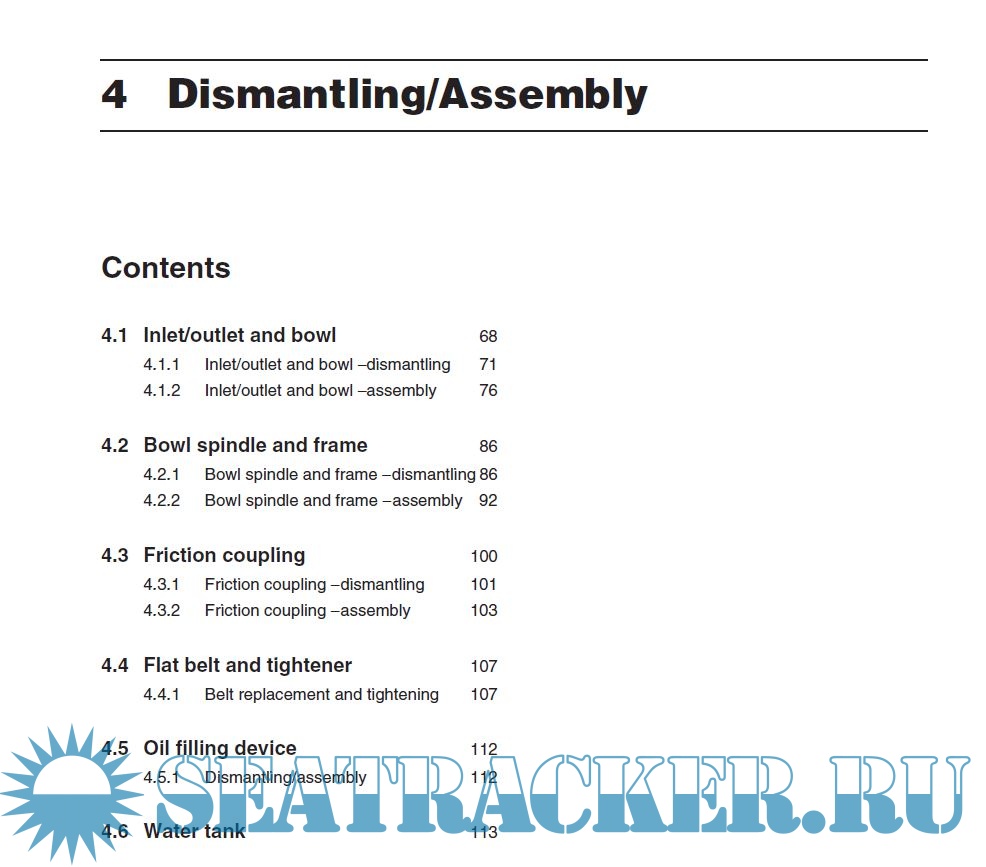 - Separator basis - Service instruction - Disassembly - Operating - Spare parts code