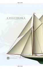 Description: ‘Ingomar’ was one of the first of the nine great Herreshoff (NGH) steel-hulled schooner yachts. She was designed and built the same year as ‘Reliance’ in 1903. Before ‘Ingomar’ all the big Herreshoff sailing yachts had been single-stickers, consisting mostly of the America’s Cup boats.
