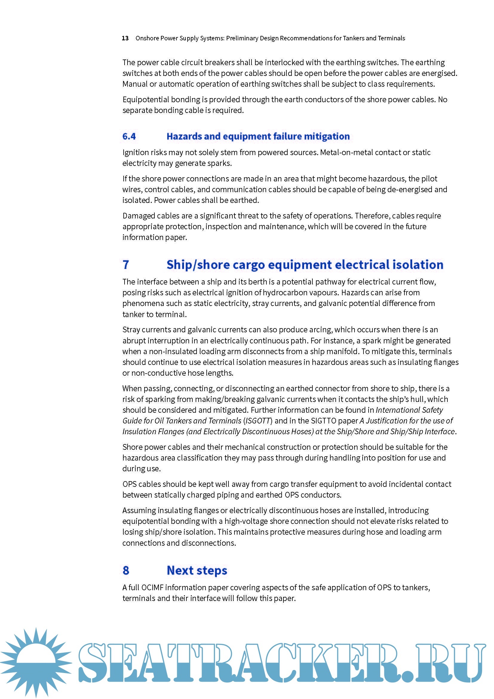 This paper aims to deliver sufficient information promptly, enabling the industry to advance shore power projects. A full OCIMF information paper covering aspects of the safe application of OPS to tankers, the terminals and their interface will follow this paper.