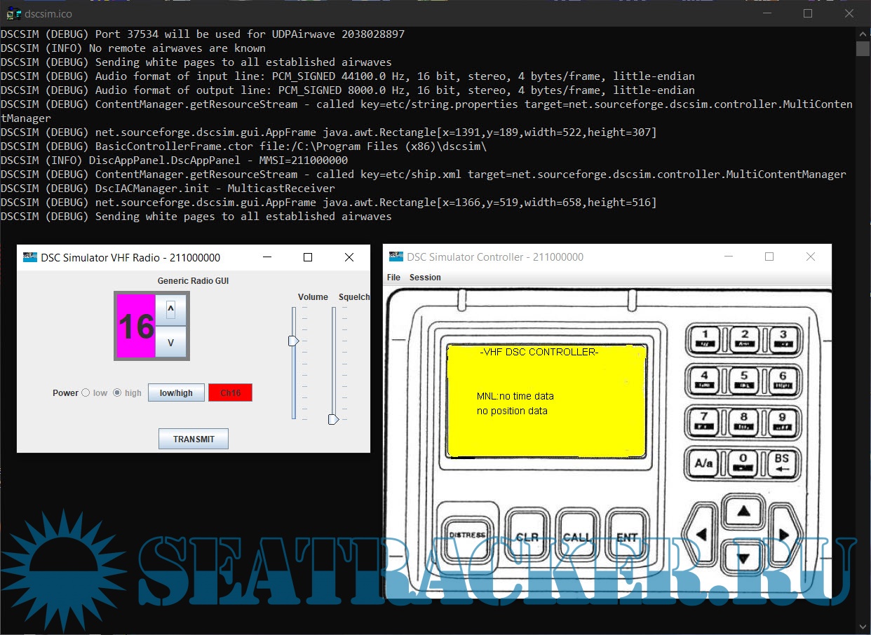 Simulates the operation of a marine VHF radio with Digital Selective Calling (DSC).