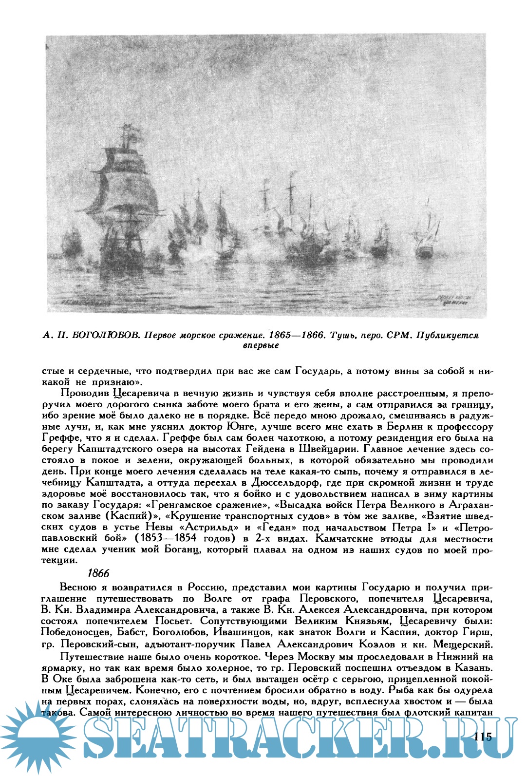 Описание: Первая публикация воспоминаний художника-мариниста А. П. Боголюбова (1824—1896), создателя серии картин, воспевающих историю отечественного флота за два века его существования от петровских баталий на Балтике до Морского праздника в Шербурге, в честь Русско-Французского союза в 1896 году.