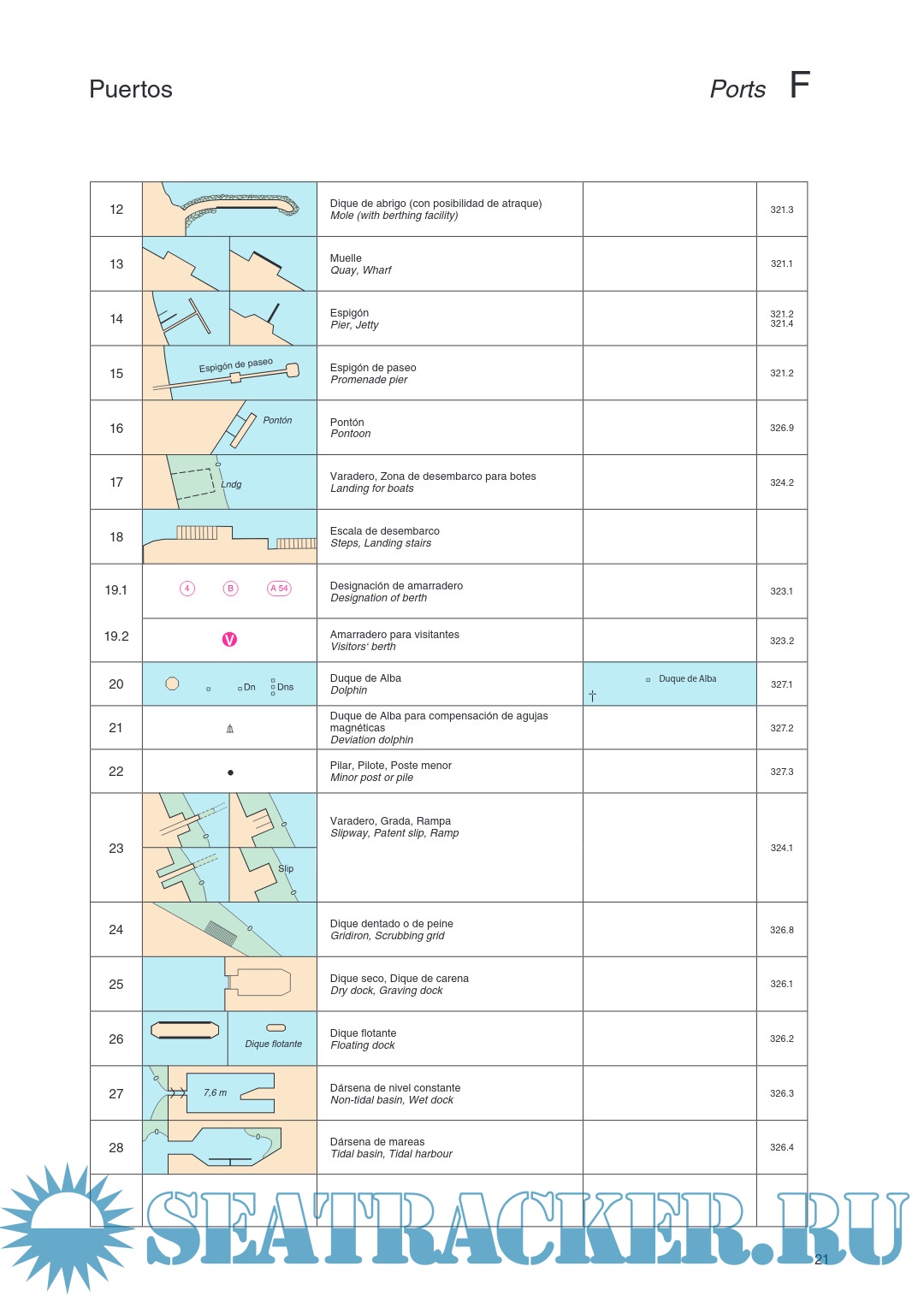 Description: This edition of Symbols, Abbreviations and Terms used on charts is based upon the “Chart specifications of the IHO” (IHO: International Hydrographic Organization), which came into force at the XIIth International Hydrographic Conference 1982 in Monaco. This publication also shows number INT 1, as being the official publication of the IHO in Spanish language on this topic.