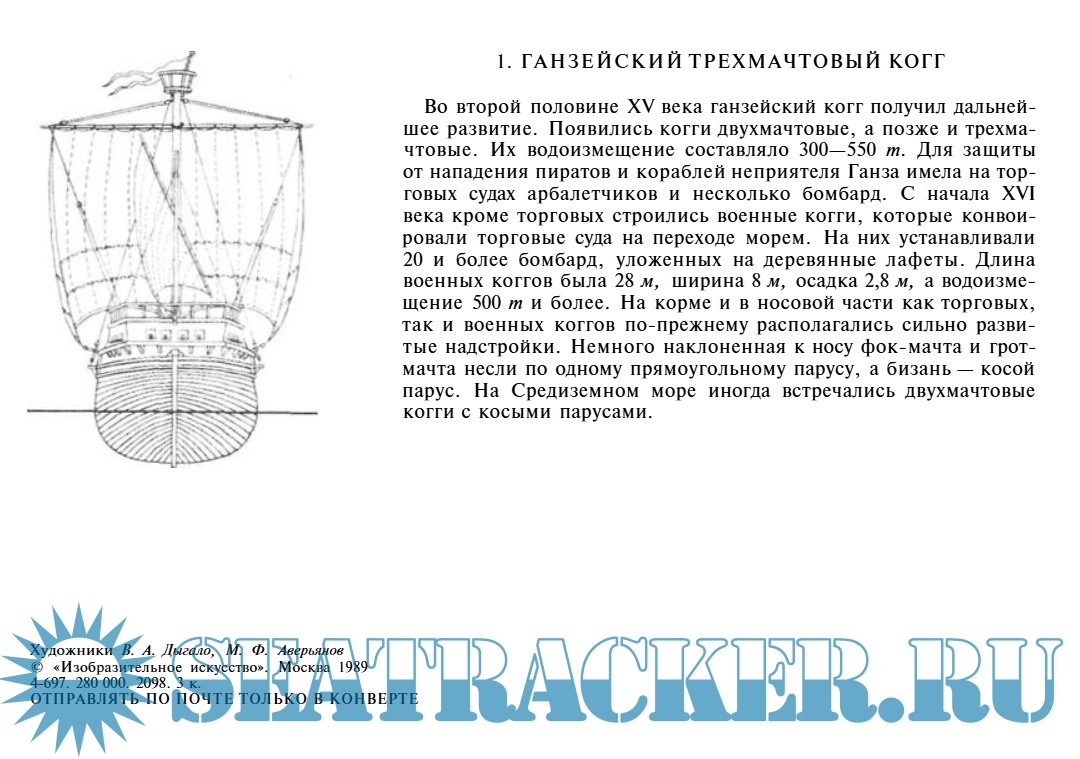 Год выпуска: 1986 - 1991 Язык: Русский Автор: В. Дыгало Жанр: Историческое Издательство: Изобразительное искусство Формат: PDF Качество: Отсканированные страницы Количество страниц: 70 Описание: Три набора открыток, которые стали классикой отечественной морской истории. Каждый набор включает 32 открытки. Набор № 1 посвящен кораблям Древнего мира. Набор № 2 - кораблям Средневековья. Набор № 3 - кораблям русского флота 18-19 веков. Над выпусками работало трое художников: В. Дыгало (профессиональный военный моряк, адмирал), Н.Нарбеков (скончался после выпуска набора по истории древних кораблей), М. Аверьянов.