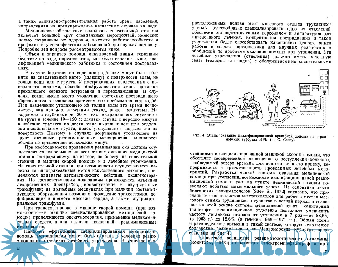 Год выпуска: 1980 Язык: Русский Автор: Сапов И.А., Шанин Ю.Н. Жанр: Руководство Издательство: Л.: Медицина Формат: PDF Качество: Отсканированные страницы Количество страниц: 124 Описание: В книге содержится систематическое изложение этиологии, патогенеза, клиники, первой помощи, лечения и профилактики утопления и профессиональных заболеваний водолазов. Наиболее подробно представлены материалы по утоплению как основному патологическому состоянию у находящихся на воде людей и наиболее грозному осложнению профессиональных заболевании водолазов. Приведены основные методы оказания реанимационной помощи. Изложены основы медицинского обеспечения водолазных спусков и работ. Пособие предназначено для медицинских работников и всего персонала Спасательной службы, ведомств и организаций, выполняющих водолазные и кессонные работы, а также проводящих спортивные мероприятия на воде. Оно может быть полезным для клиницистов различного профиля, врачей-профпатологов, специалистов по оксигенобаротерапии и для широкого круга любителей подводного спорта и водолазов.