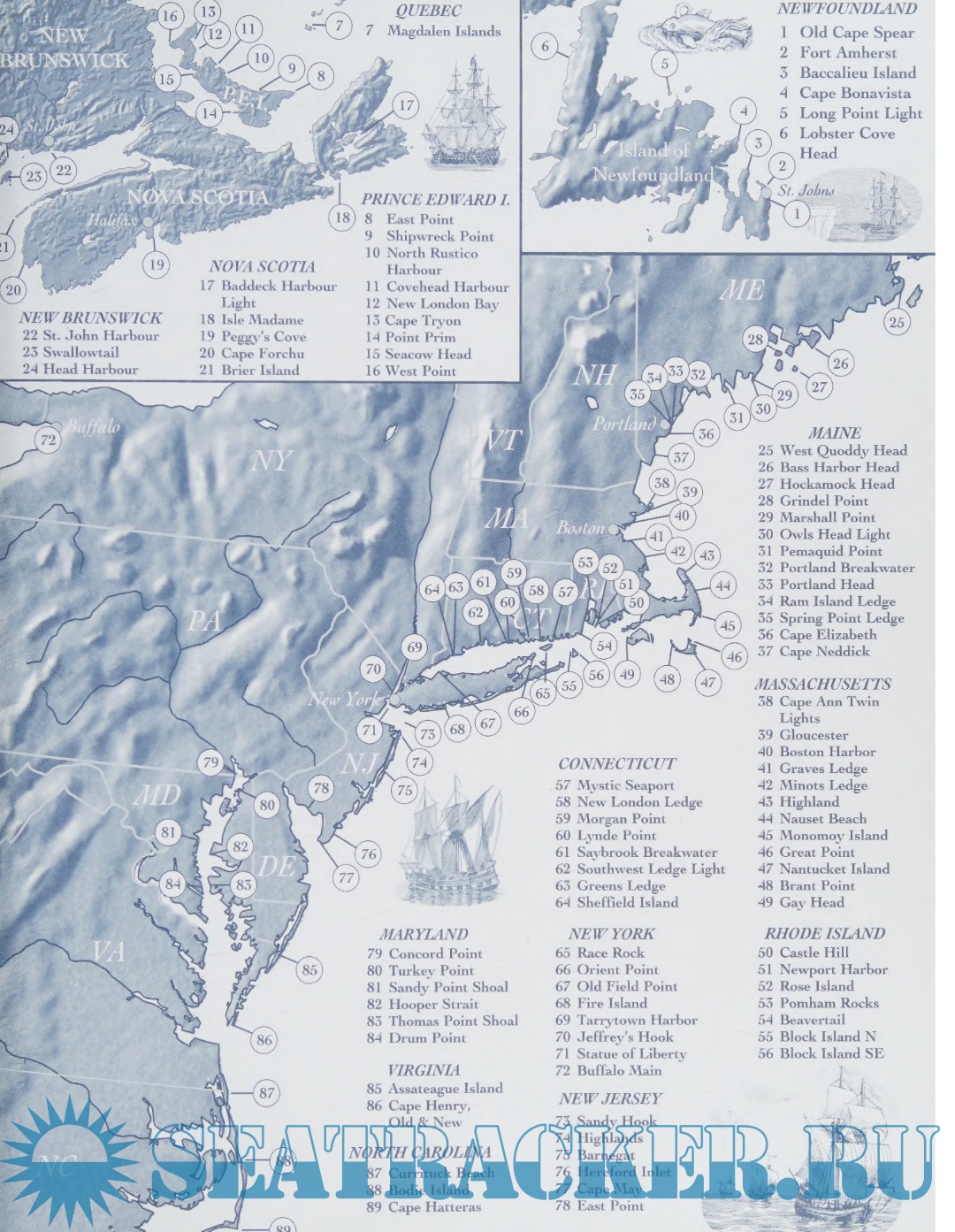 - Profiles of every kind of lighthouse, from the boldly striped 196-foot tower overlooking the notorious Diamond Shoals off Cape Hatteras, North Carolina, to the many octagonal and pyramidal beacons built to guide sailors into North American harbors