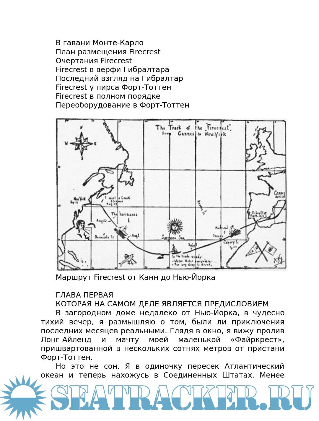 Описание: Ален Жербо (1893-1941) французский моряк, писатель и чемпион по теннису, совершивший кругосветное плавание в одиночку. В конце концов он осел на островах южной части Тихого океана, где написал несколько книг об образе жизни островитян. В книге «The fight of the Firecrest» (Битва Файркреста) он описывает своё одиночное плавание через Атлантику на яхте «Файркрест» из Гибралтара в Нью-Йорк в 1923 году за 101 день.
