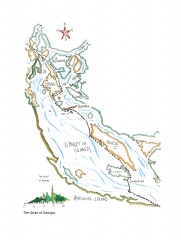 Description: A soul-searching personal account of a young man’s 1,700-kilometre kayak journey from Victoria, BC, to Gustavas, Alaska, illustrated with whimsical watercolour maps and illustrations of local flora, fauna, and landscapes.