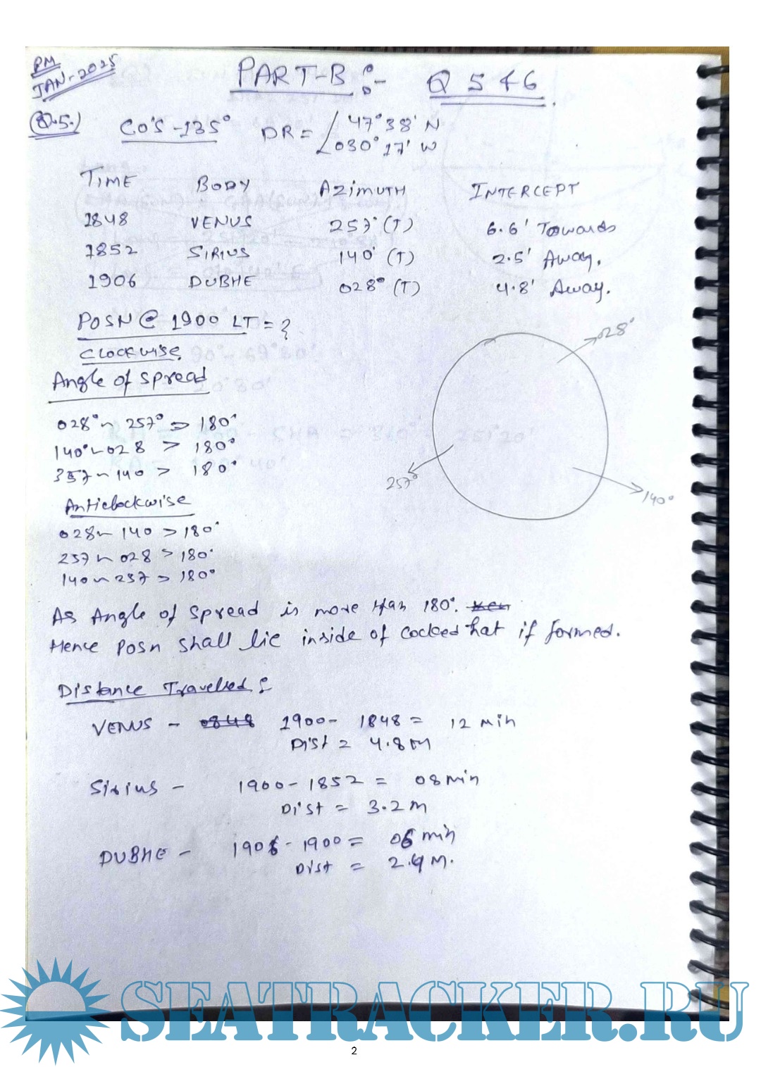 Phase I - Terrestrial & Coastal Navigation - Solved Part C: Q. 7 & 8 (Jan 2025 ~ Jan 2018) from…