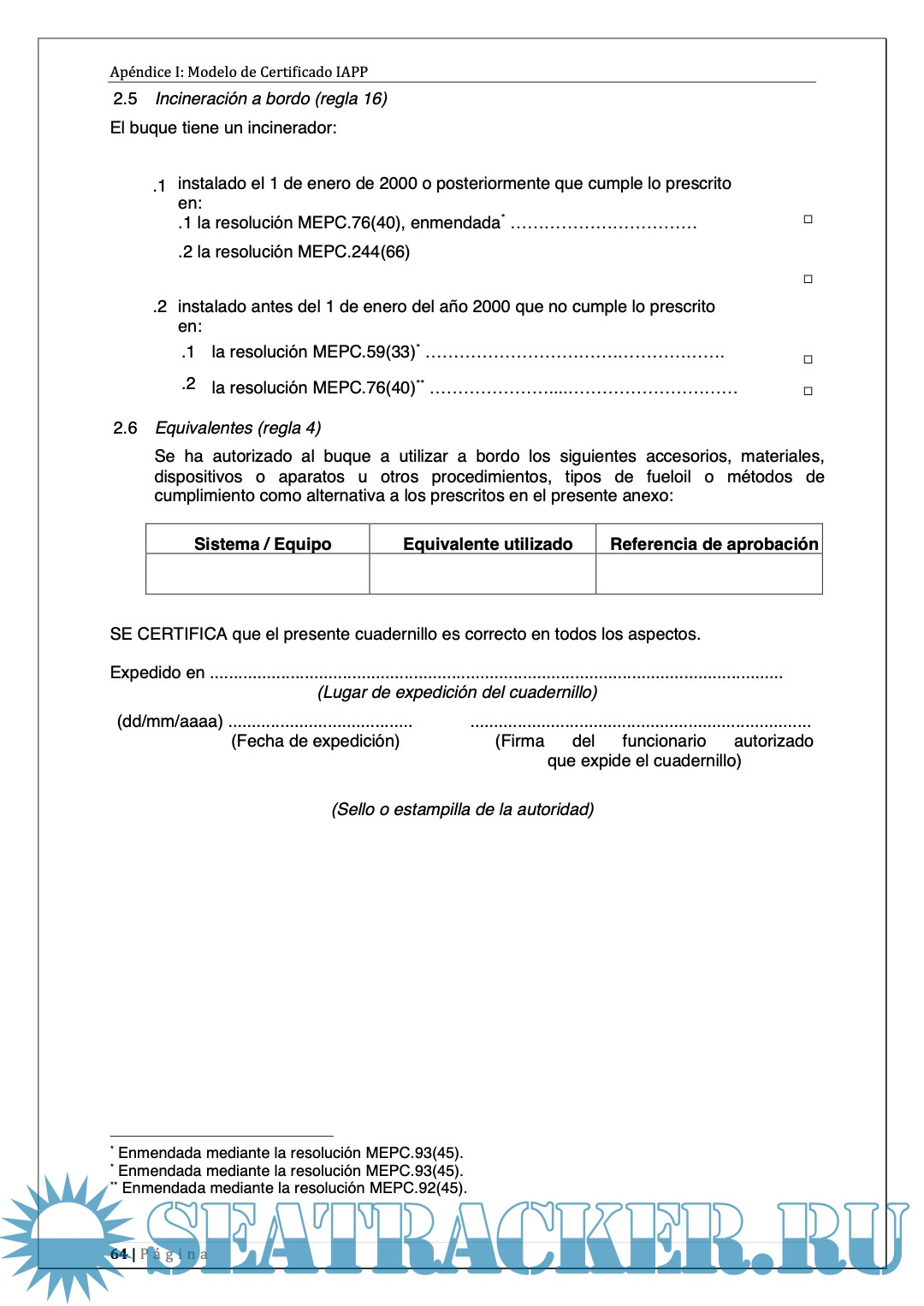 Incorpora todas las enmiendas hasta El comité MEPC número 76.