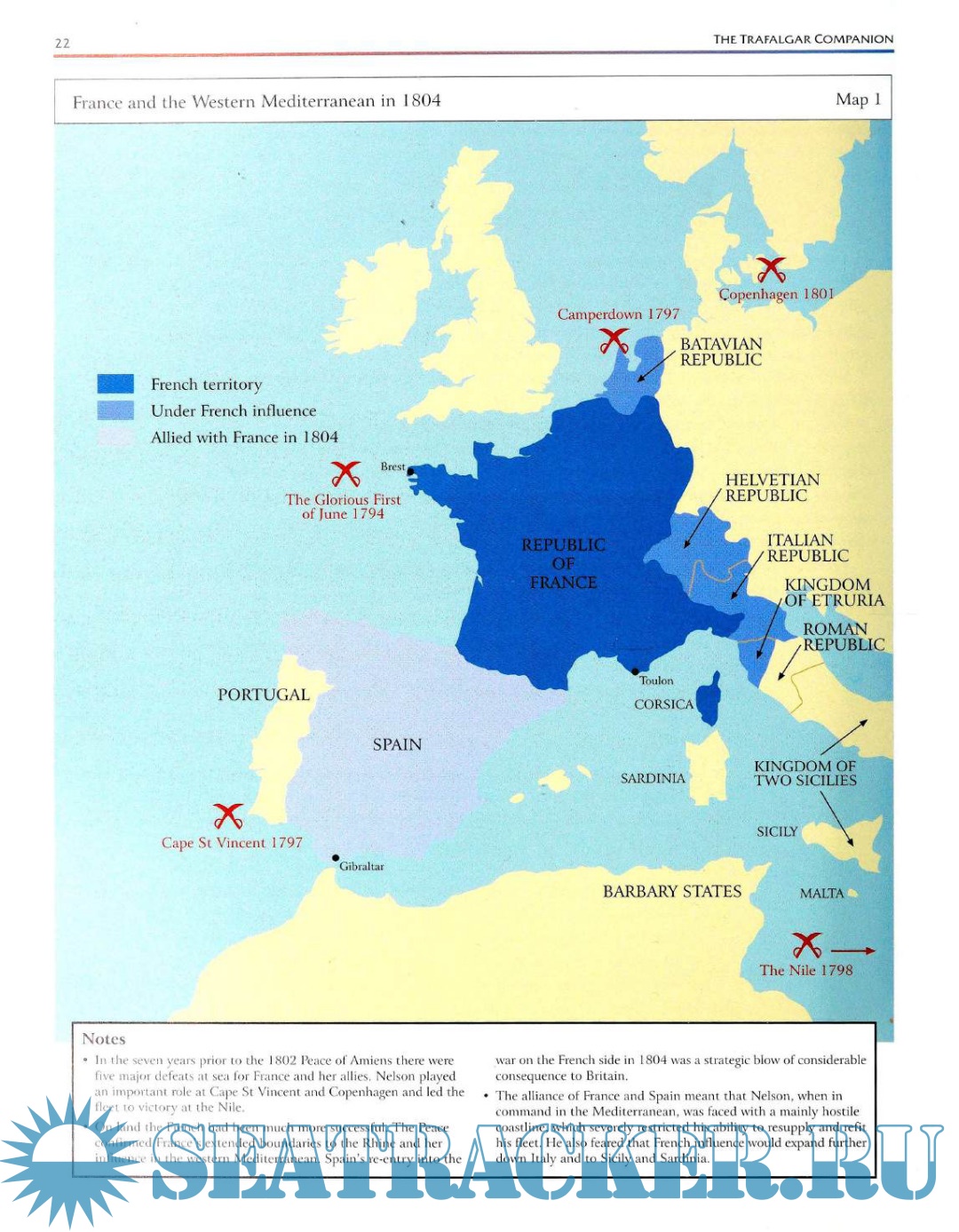 Year: 2005 Language: English Author: Adkin M. Genre: Historical Publisher: Aurum Press Format: PDF Quality: eBook Pages count: 568 Description: On October 21 1805, a British fleet led by Admiral Lord Nelson effectively crippled the combined fleets of Spain and France off of Spain's Cape Trafalgar—crushing Napoleon Bonaparte's dream of invading and conquering Britain. Despite suffering a mortal wound during the battle, Nelson secured his place in history with this victory, as well as ensuring Britain's century-long naval dominance of the Continent. This book is both a battle history and Nelson's biography. There are sections detailing every conceivable aspect of nautical life in the 19th century—ships and seamanship, guns and tactics, command and control, et al.—and sidebars sprinkled throughout the narrative present anecdotes, vignettes and little-known facts. In addition to its encyclopaedic coverage, the book is illustrated with hundreds of detailed maps and diagrams and drawings. The two-page, coloured drawings of many of the ships of both fleets—including Nelson's flagship, Victory—are painted in great detail.