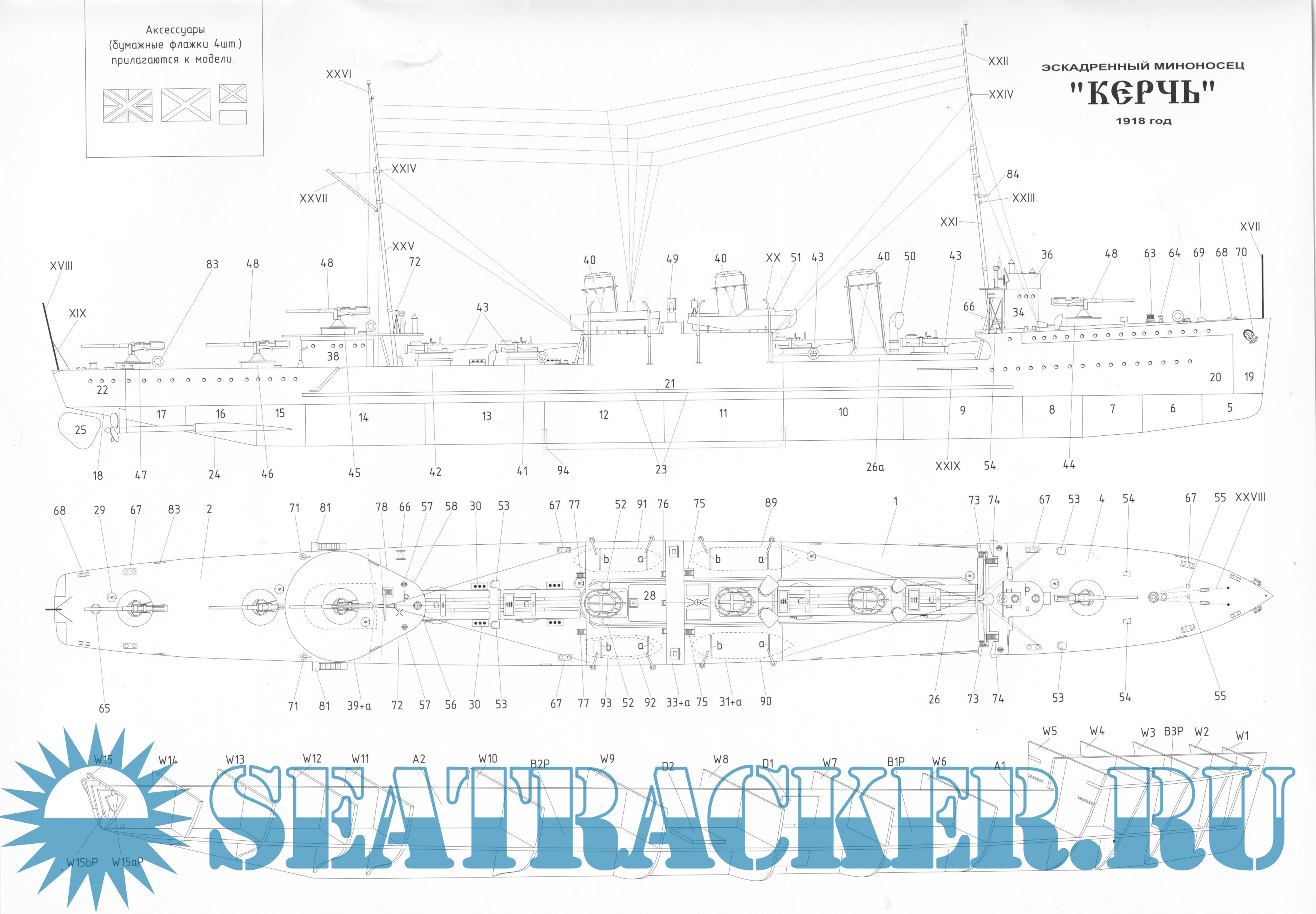 12 листов цветных выкроек и описаний для изготовления бумажной модели эскадренного миноносца ''Керчь'' 1918 годСкриншоты