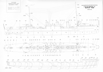 Описание: 12 листов цветных выкроек и описаний для изготовления бумажной модели эскадренного миноносца ''Керчь'' 1918 год