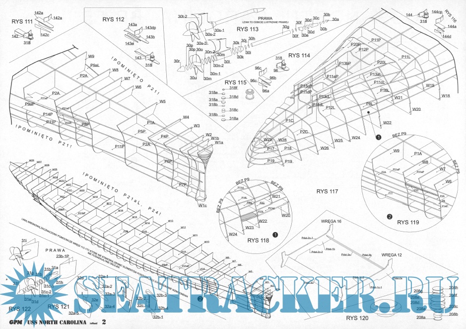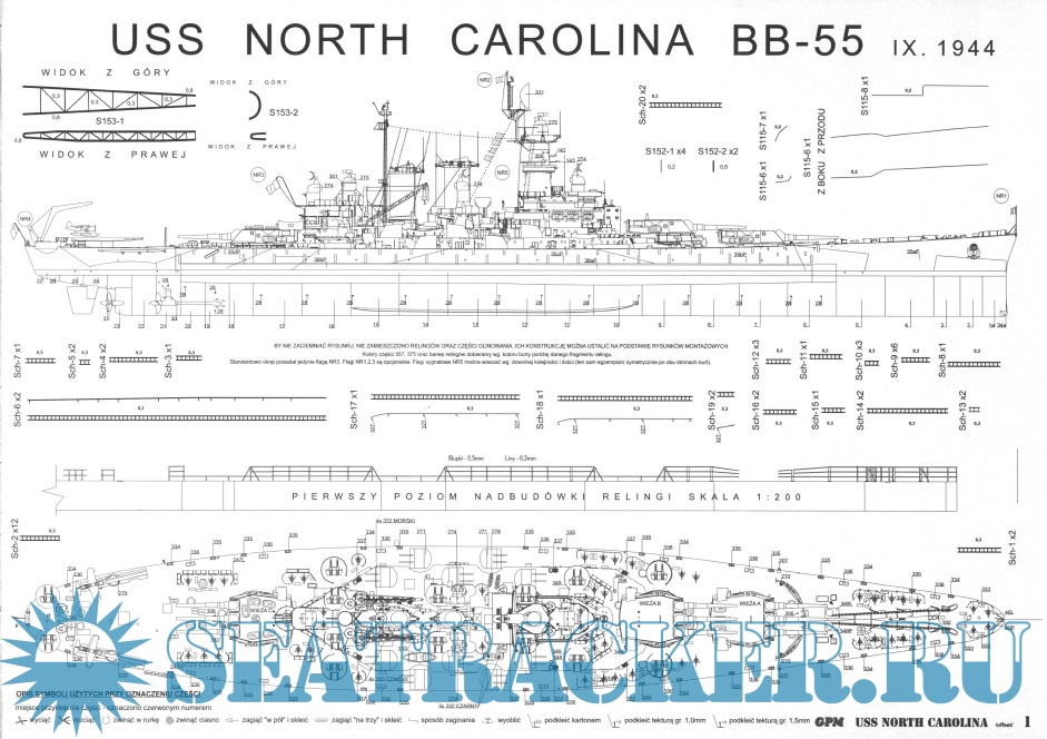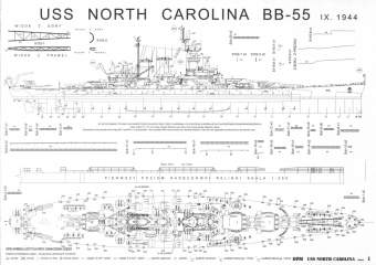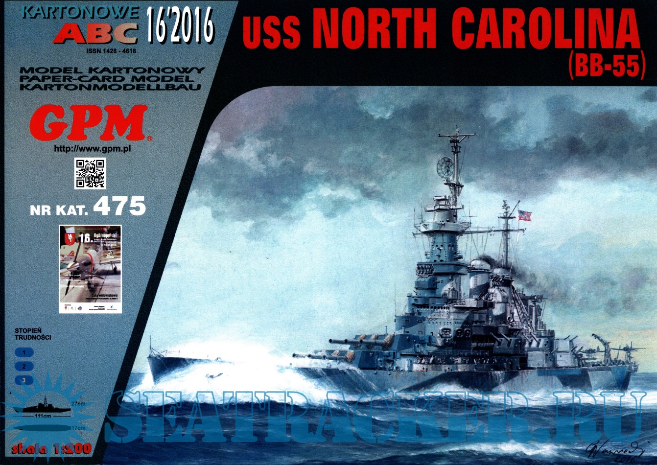 55 листов цветных выкроек и описаний для изготовления бумажной модели американского линкора USS NORTH CAROLINA BB-55 в масштабе 1:200