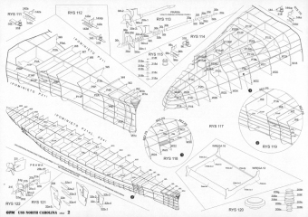 Описание: 55 листов цветных выкроек и описаний для изготовления бумажной модели американского линкора USS NORTH CAROLINA BB-55 в масштабе 1:200