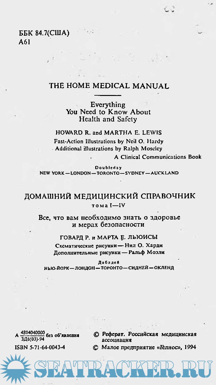 Описание: Американский домашний медицинский справочник рассчитан в основном на неспециалистов и дает разнообразную информацию о болезнях, симптомах основных заболеваний, разъясняет, как правильно себя вести при различных заболеваниях. Обращено внимание на то, что для успешного лечения болезни, главное — раннее диагностирование заболевания.