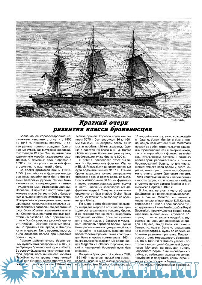 Описание: Броненосное кораблестроение насчитывает неполных сто лет - с 1855 по 1945 гг. Известны, впрочем, и более ранние попытки создания броненосных судов.