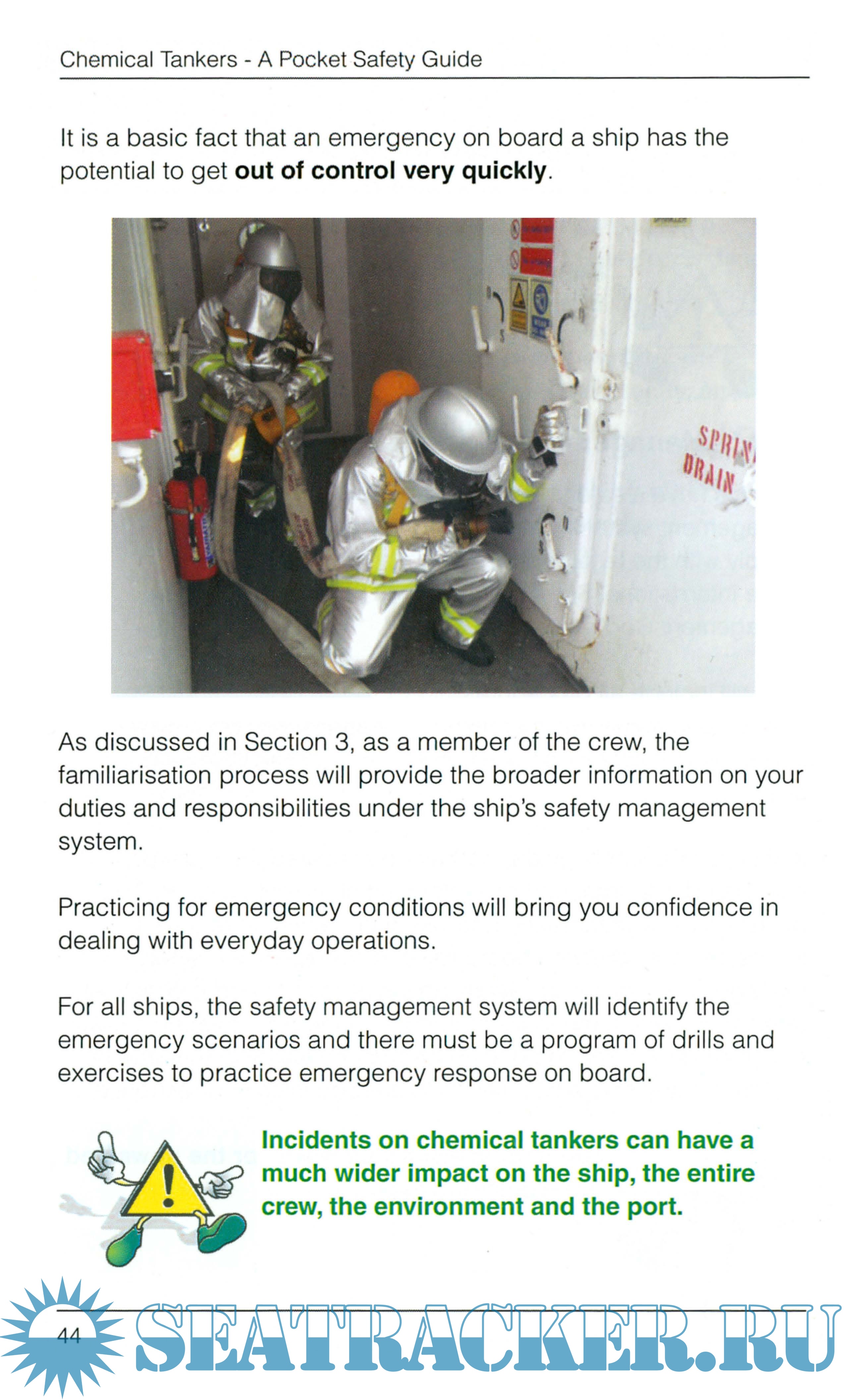 As a crew member on a chemical tanker, this book will help you with the basics, and the first part of the book looks at the ships and the kind of cargoes they carry. Whereas the rest of the book looks in more detail at the specific hazards and the safety-based responses to them.