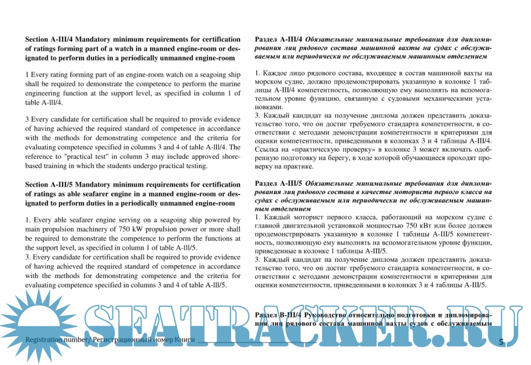 Год выпуска: 2015 Язык: Русский, Английский Автор: А. Л. Боран-Кешишьян Жанр: Книга регистрации Издательство: НГМА Формат: PDF Качество: Отсканированные страницы Количество страниц: 87 Описание: Эта книга предназначена для подготовки морских специалистов к получению квалификационных свидетельств по стандартам Международной конвенции STCW 1978 с поправками. Она охватывает требования к матросам-мотористам, несущим вахту в машинном отделении или выполняющим обязанности на периодически необслуживаемых судах, а также к мотористам первого класса. Особое внимание уделяется практическому обучению на борту: ведению Книги регистрации практики, выполнению задач под наблюдением офицеров, подтверждению компетентности и безопасной работе с механизмами судна. Подробно рассмотрены обязательные и дополнительные навыки, включая работу с насосными системами, электроустановками, техническое обслуживание и размещение грузов. Книга обеспечивает систематическую программу обучения, контроль прогресса и соответствует требованиям российских и международных правил, помогая кадетам и морякам приобрести практический опыт и профессиональные навыки для успешной сертификации и безопасной службы на судне.