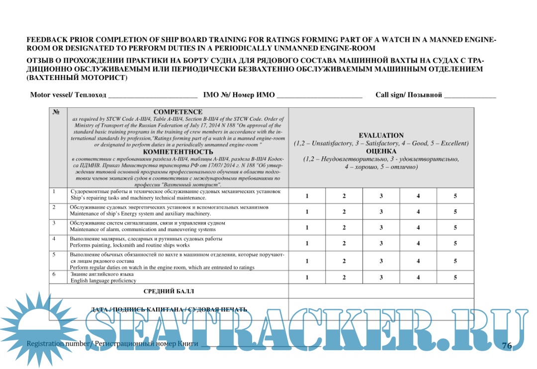 Книга регистрации практической подготовки вахтенного моториста и квалифицированного моториста на борту судна