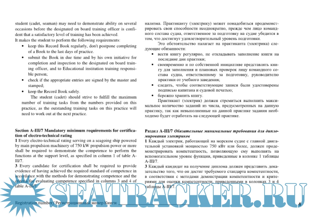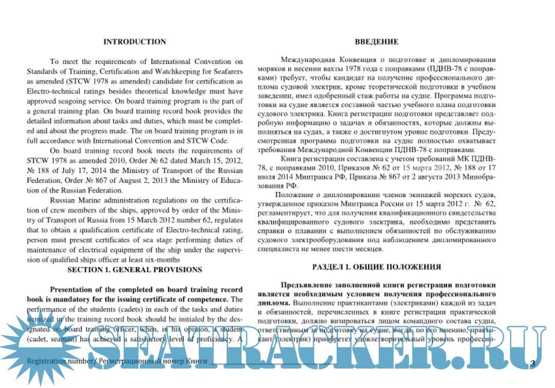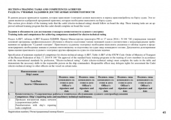 Описание: Эта книга регистрации практической подготовки судовых электриков предназначена для структурирования обучения и контроля навыков моряков в соответствии с требованиями Международной Конвенции ПДНВ-78 с поправками (STCW 1978, amended 2010). Она объединяет теоретические знания и практический опыт, необходимый для получения квалификационного свидетельства электрика на морском судне. Книга детально описывает задачи и обязанности, которые должны выполняться под руководством опытного офицера, а также фиксирует уровень освоенных компетенций. Практикант обязан вести книгу регулярно, своевременно предоставлять её на проверку и обеспечивать достоверность записей. Руководители на борту и капитаны оценивают прогресс, подписывают записи и контролируют выполнение обязательных заданий. Книга охватывает обязательные требования для судовых электриков, включая работу на судах с мощностью главной установки 750 кВт и выше, а также фиксирует прохождение обязательного ознакомления с безопасностью и техническими характеристиками судна. Она является официальным документом, подтверждающим квалификацию и подготовку морского электрика.
