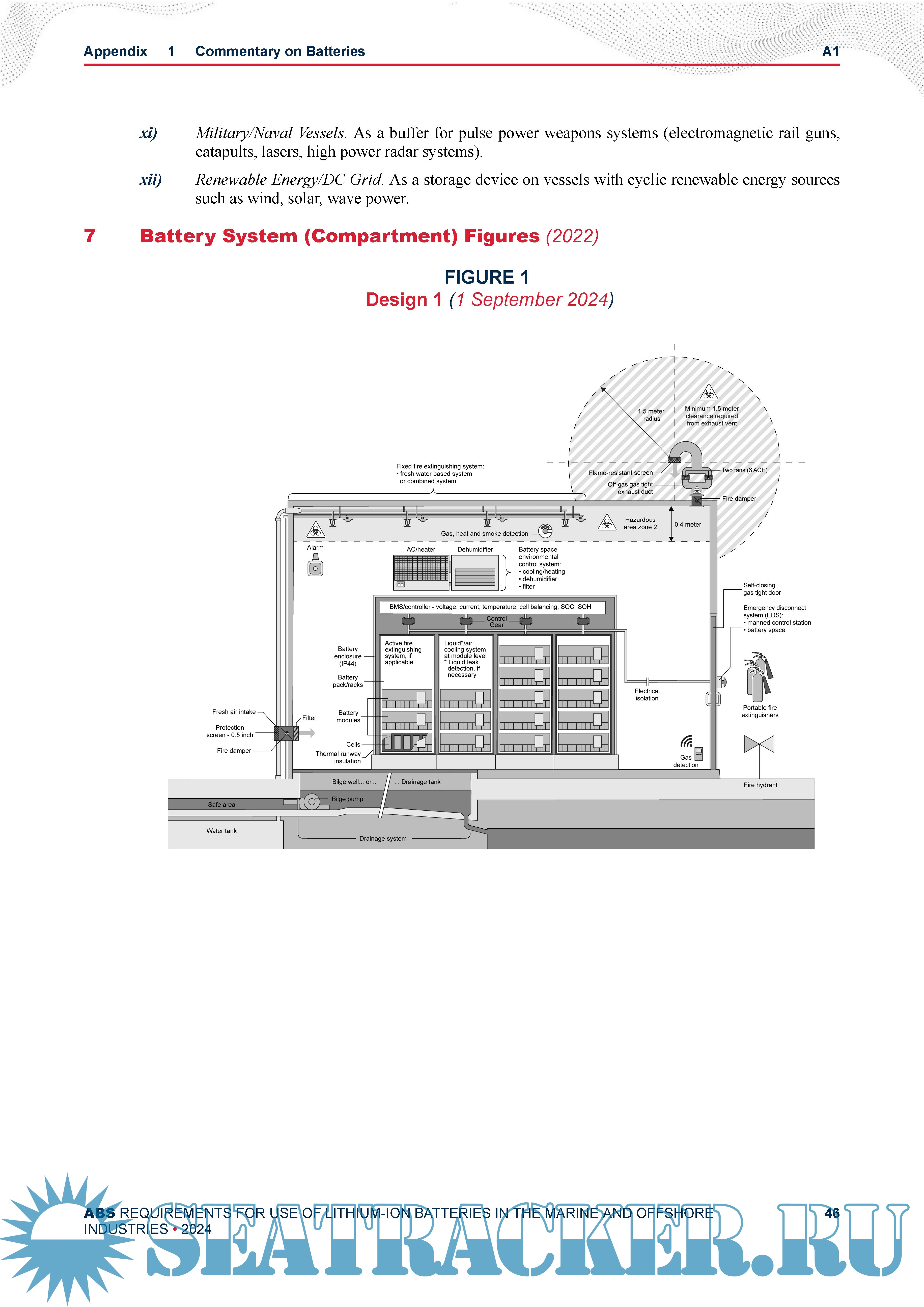 The document establishes safety guidelines for owners, operators, shipyards, designers, and manufacturersfor marine systems. The September 2024 edition includes updates to battery material testing requirements for flammability, clarification for battery overcharge/overcurrent protection, updates to off-gas vent system fan redundancy requirements, off-gas vent system integrated to the battery system, battery system creepage and clearance distances, Fixed Fire Extinguishing System (FFES) requirements, battery space location contiguous to side shell, and updates to figures in Appendix 1.