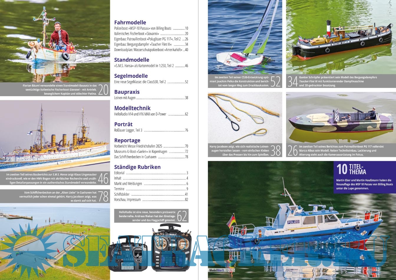 Year: 2025 Language: German Author: Eric Schafenrort (Redaktor) Genre: Periodical publication Edition: 2025-11 Format: PDF Quality: eBook Pages count: 84 Description: Das führende Fachmagazin für Schiffsmodellbauer. Egal ob Stand- oder Fahrmodell, ob kleines Segelboot oder gigantisches Kreuzfahrtschiff. Die Modellwerft informiert über Neuheiten, hilft mit Bautipps und fasziniert mit besonderen Reportagen.