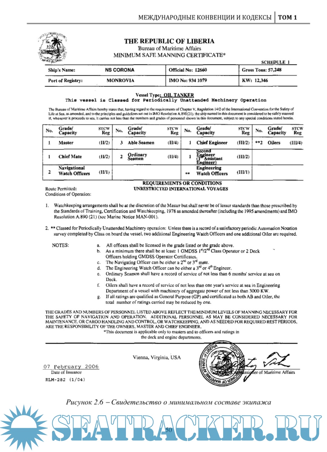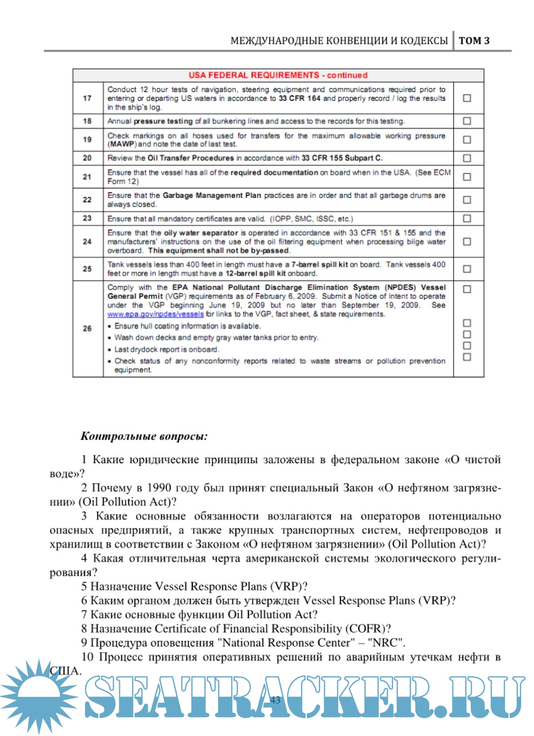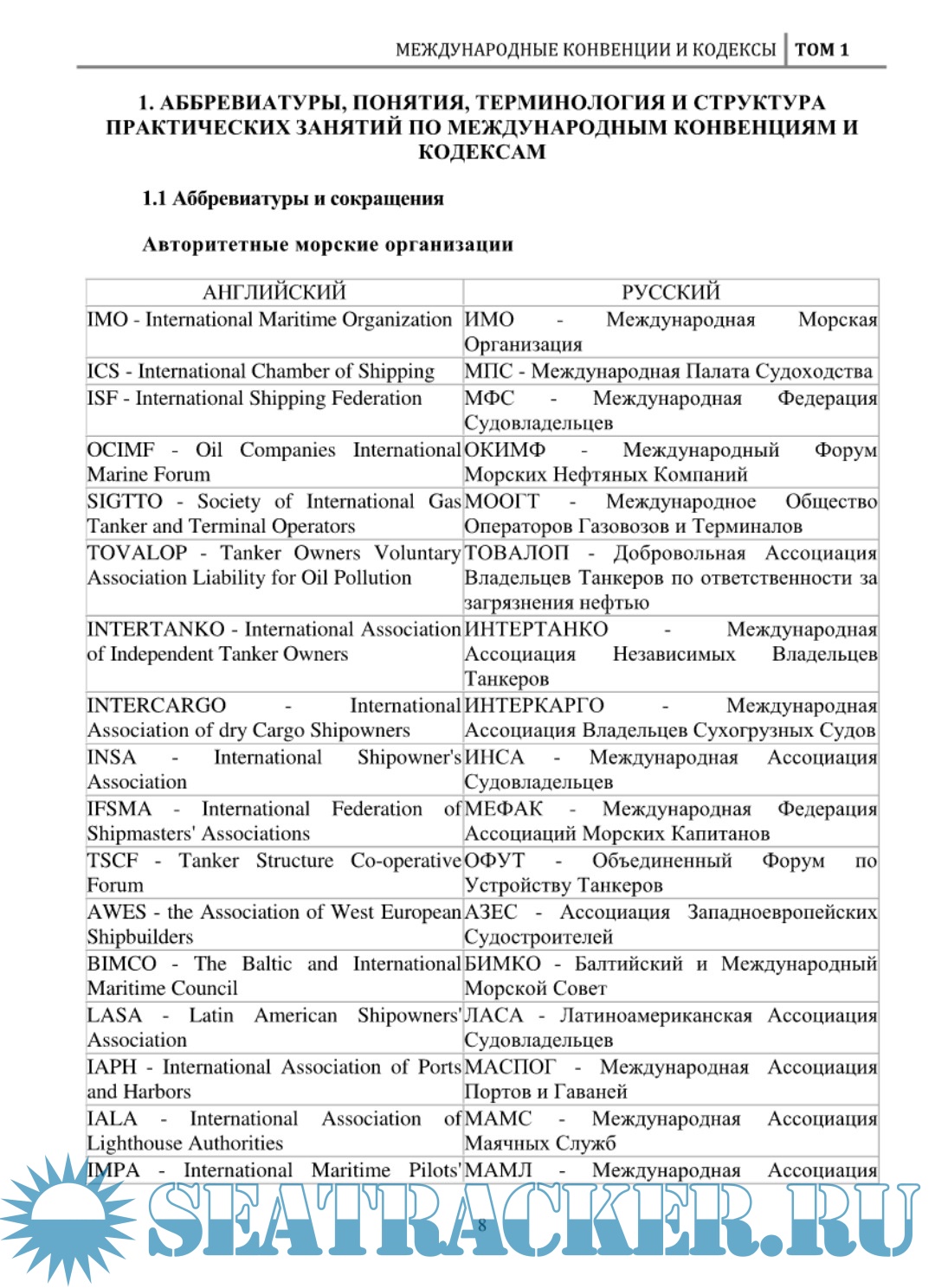 Описание: Учебное пособие «Международные конвенции и кодексы» предназначено для курсантов и студентов, обучающихся по специальностям 18.04.02 и 18.04.03: «Судовождение» в качестве обязательного элемента профессиональной подготовки морских специалистов в соответствии с требованиями международных руководящих документов. Приведенные материалы соответствуют требованиям международных стандартов, по состоянию на начало 2012 года и используются для проведения активных форм занятий в виде тренингов, деловых шр, разбора конкретных ситуаций и т.д.