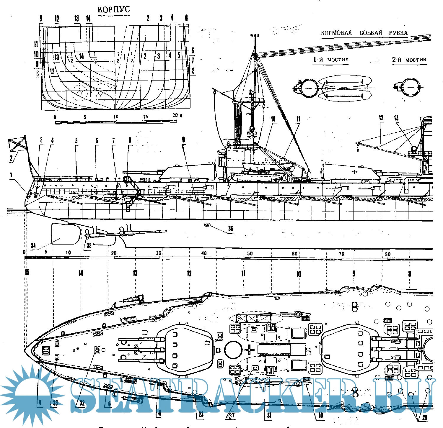 6 листов чертежей линейного корабля Петропавловск
