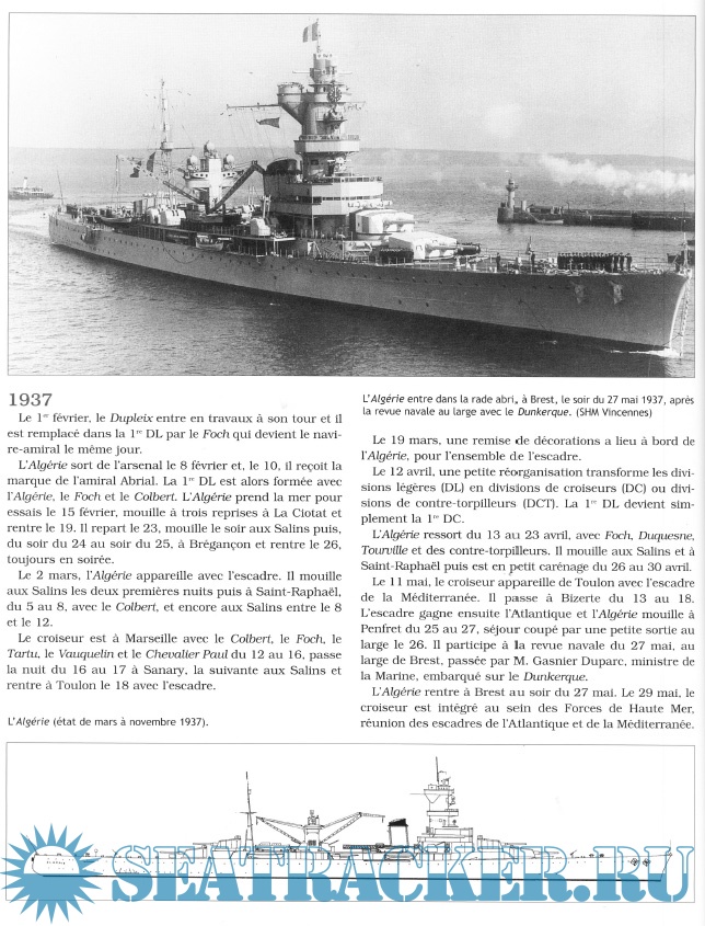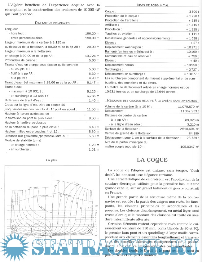 Description: L'Algérie est le dernier des sept croiseurs de 10 000 tw construit en France entre 1924 et 1934. Ce croiseur a été un bâtiment réussi sur le plan technique, bien armé et bien protégé tout en conservant une vitesse satisfaisante et une autonomie supérieure à celle des croiseurs français précédents. L'élégance du bâtiment est évidente. L'Algérie a été un beau bateau. Basé à Toulon, il sert de navire-amiral pendant toute sa courte carrière, avant de disparaître lors du dramatique sabordage de la flotte le 27 novembre 1942, après seulement huit ans d'activité.