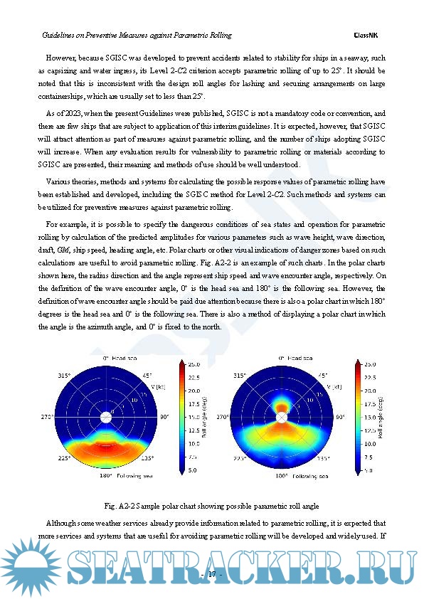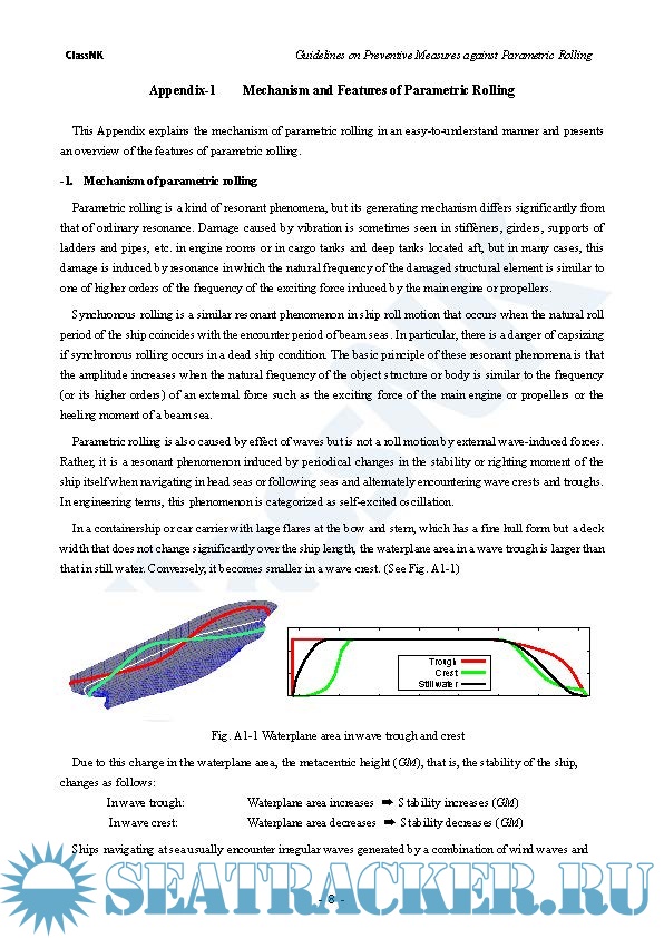 With this background, Nippon Kaiji Kyokai (ClassNK; hereinafter, “the Society”) decided to publish these Guidelines, which summarize the requirements to affix the related notations to classification characters of ships that take effective measures against parametric rolling, together with the related requirements. The Appendices of the Guidelines also provide a fundamental knowledge of the mechanism, features and points to note in connection with parametric rolling, an outline of the parametric roll response calculation, an introduction to devices and techniques for preventive measures against parametric rolling and the method for preparing polar charts.