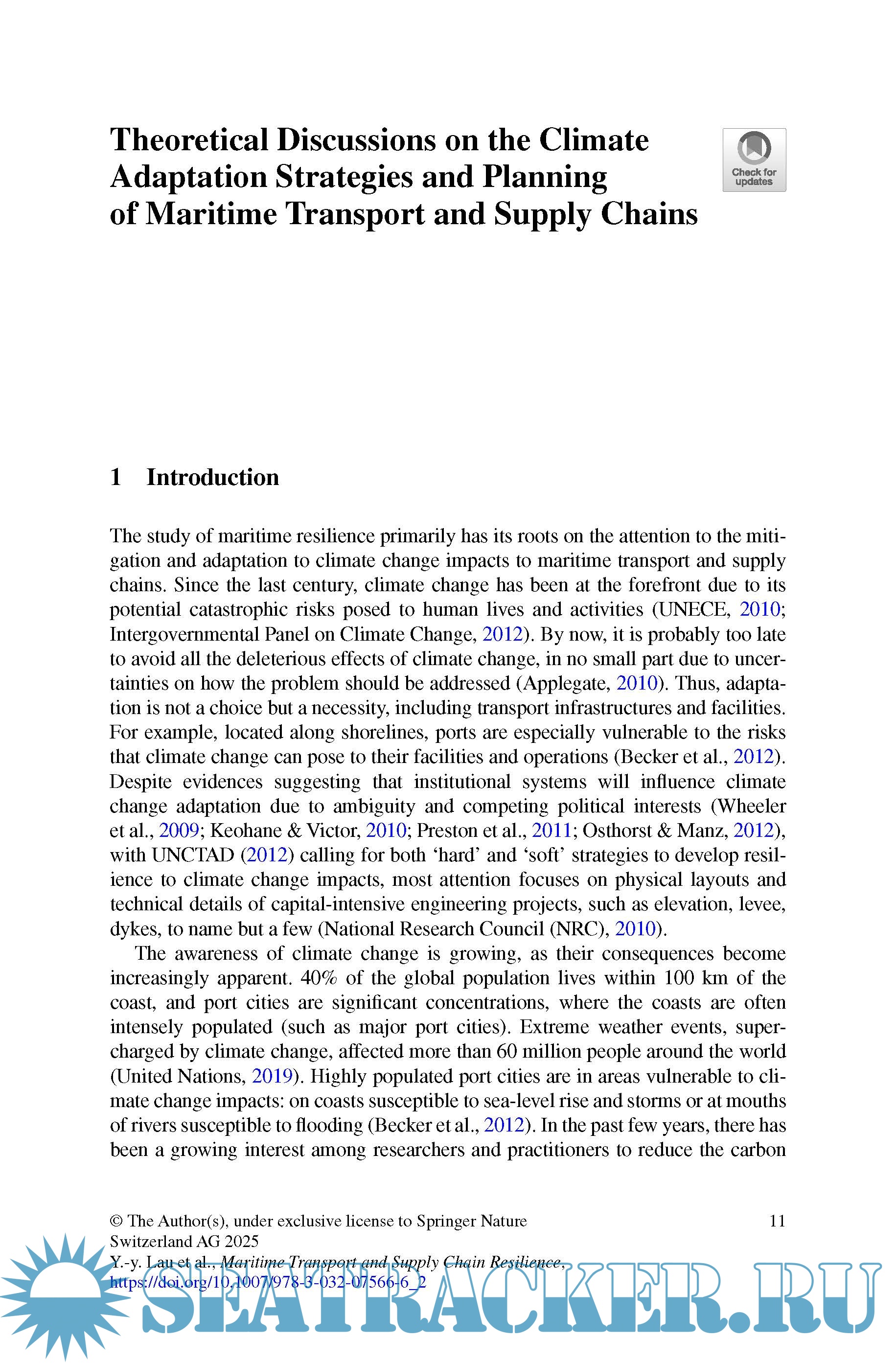 Year: 2025 Language: English Author: Yui-yip Lau and Others Genre: Textbook Publisher: Springer Edition: December 21, 2025 ISBN: 9783032075659 Format: PDF Quality: eBook Pages count: 148 Description: This book addresses maritime transport and supply chain resilience, offering analysis of emerging topics as well as case studies from different countries and regions. Understanding resilience as planning and preparing for changes, and absorbing, recovering from, and adapting to such changes, it offers readers an insightful outlook on how maritime transport and supply chain stakeholders develop strategies in achieving resilience, and mobilizes knowledge between them. As such, this book investigates the impacts and effects of the several disruptive events that have taken place in the past decade in the maritime transport and supply chain sectors, and in the process, provides advice on the best practice for the betterment of the future. Intended audiences include scholars, industrial practitioners, policymakers, and other professionals in the maritime transport and supply chain sectors.