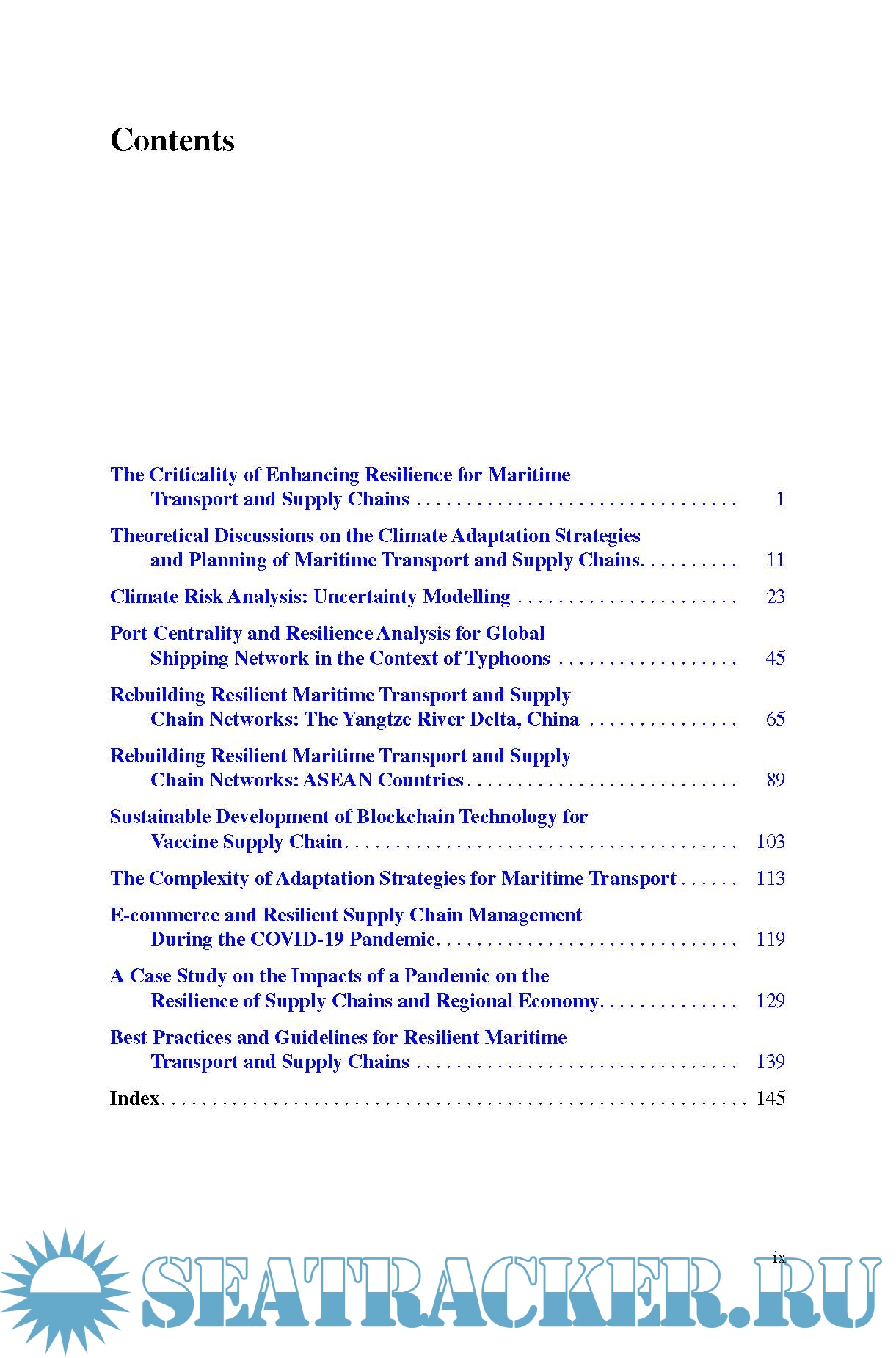 Description: This book addresses maritime transport and supply chain resilience, offering analysis of emerging topics as well as case studies from different countries and regions. Understanding resilience as planning and preparing for changes, and absorbing, recovering from, and adapting to such changes, it offers readers an insightful outlook on how maritime transport and supply chain stakeholders develop strategies in achieving resilience, and mobilizes knowledge between them.