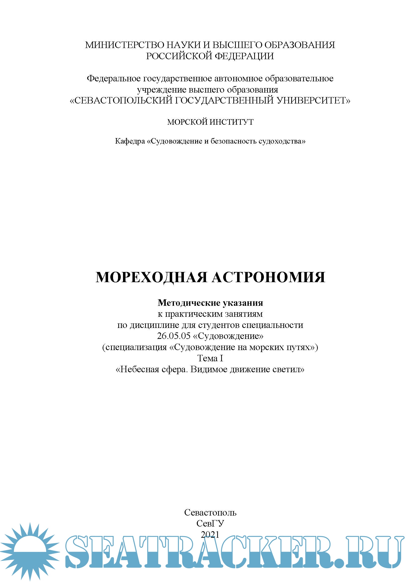 Целью методических указаний является оказание студентам методической помощи при подготовке к практическим занятиям и выполнении индивидуальных заданий, предусмотренных учебным планом, по дисциплине «Мореходная астрономия».