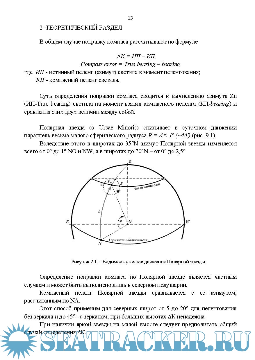 Астрономическое определение поправки компаса в море - Методические указания к выполнению…