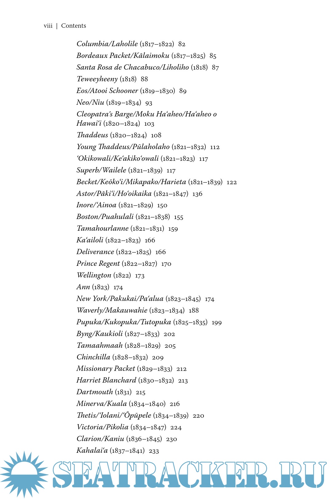 Part Two presents the histories of the sixty vessels owned by Hawaiian chiefs between 1790 and 1840, discussing their significance, origin, physical attributes, ownership, procurement, and purpose. Using newspapers and other contemporaneous sources, Mills uncovers little-known details of more than 2,000 voyages around and between the islands and to distant parts of the Pacific. His meticulous documentation of each ship’s itinerary is a valuable resource for tracking the movement of chiefs and commoners between islands as they engaged in the business of building a newly interconnected Hawaiian nation.