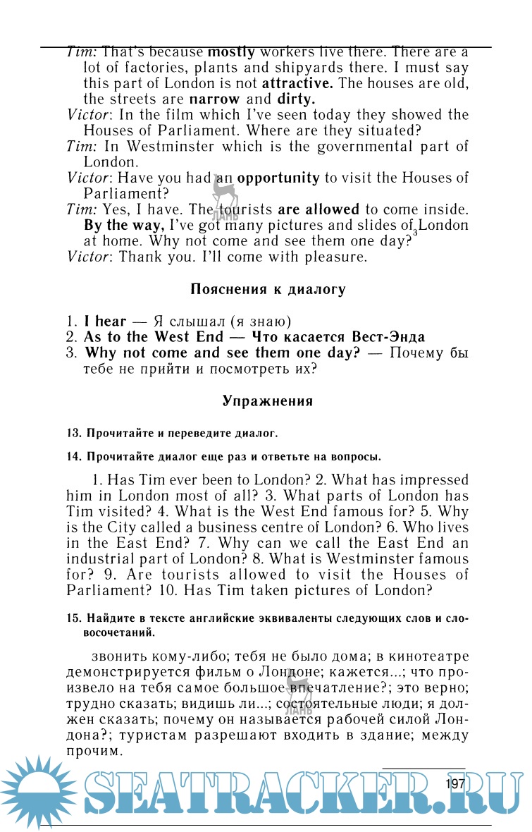 Описание: Цель учебника — научить активному владению языковым материалом, чтению и переводу со словарем литературы средней трудности по общебытовой и общеморской тематике, ведению беседы на английском языке в пределах тем, предусмотренных программой. В учебнике имеется англо-русский словарь. Учебник предназначен для учащихся высших и средних учебных заведений водного транспорта.
