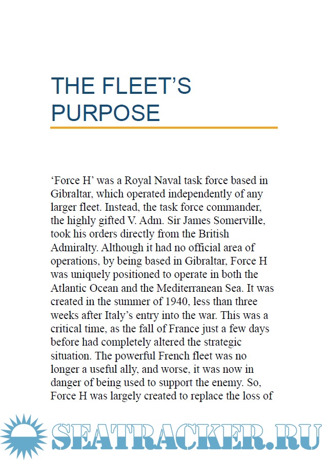 In June 1940, the fall of France and its powerful fleet completely changed the naval balance in both the Atlantic and the Mediterranean. To counter this, the Admiralty formed Force H, a unique task force based at Gibraltar, which was assigned some of Britain's most powerful capital ships. Command was given to James Somerville, one of Britain's finest admirals, who reported directly to the Admiralty. Force H would be the Royal Navy's 'fire brigade' in the theatre.