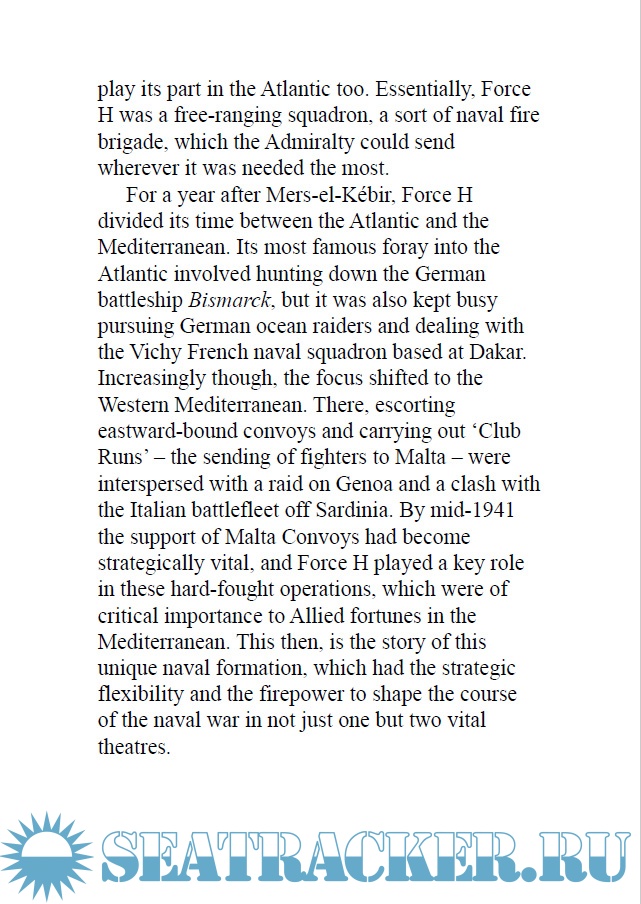 Year: 2025 Language: English Author: Angus Konstam Genre: History of the Navy Publisher: Osprey Publishing Format: PDF Quality: eBook Pages count: 151 Description: Formed to project British naval power from Gibraltar, Force H was the Royal Navy's unique strategic task force. This fully illustrated study explains its roles, organization and history. In June 1940, the fall of France and its powerful fleet completely changed the naval balance in both the Atlantic and the Mediterranean. To counter this, the Admiralty formed Force H, a unique task force based at Gibraltar, which was assigned some of Britain's most powerful capital ships. Command was given to James Somerville, one of Britain's finest admirals, who reported directly to the Admiralty. Force H would be the Royal Navy's 'fire brigade' in the theatre. In this book, naval historian Angus Konstam presents a detailed study of Force H's purpose, capabilities, organization, and how it fought to dominate the seas around the crucial Straits of Gibraltar. Until the Italian surrender in 1943, Force H would be tasked with crucial actions from the destruction of the French fleet at Mers-el-Kebir to hunting the Bismarck in the Atlantic, and from Malta convoy escort to supporting Allied amphibious landings from Madagascar to Sicily. Packed with spectacular original artwork, maps and diagrams, it demonstrates how Force H, more than any other British naval force, had the strategic flexibility and firepower to turn the tide of war in not just one, but two vital theatres.