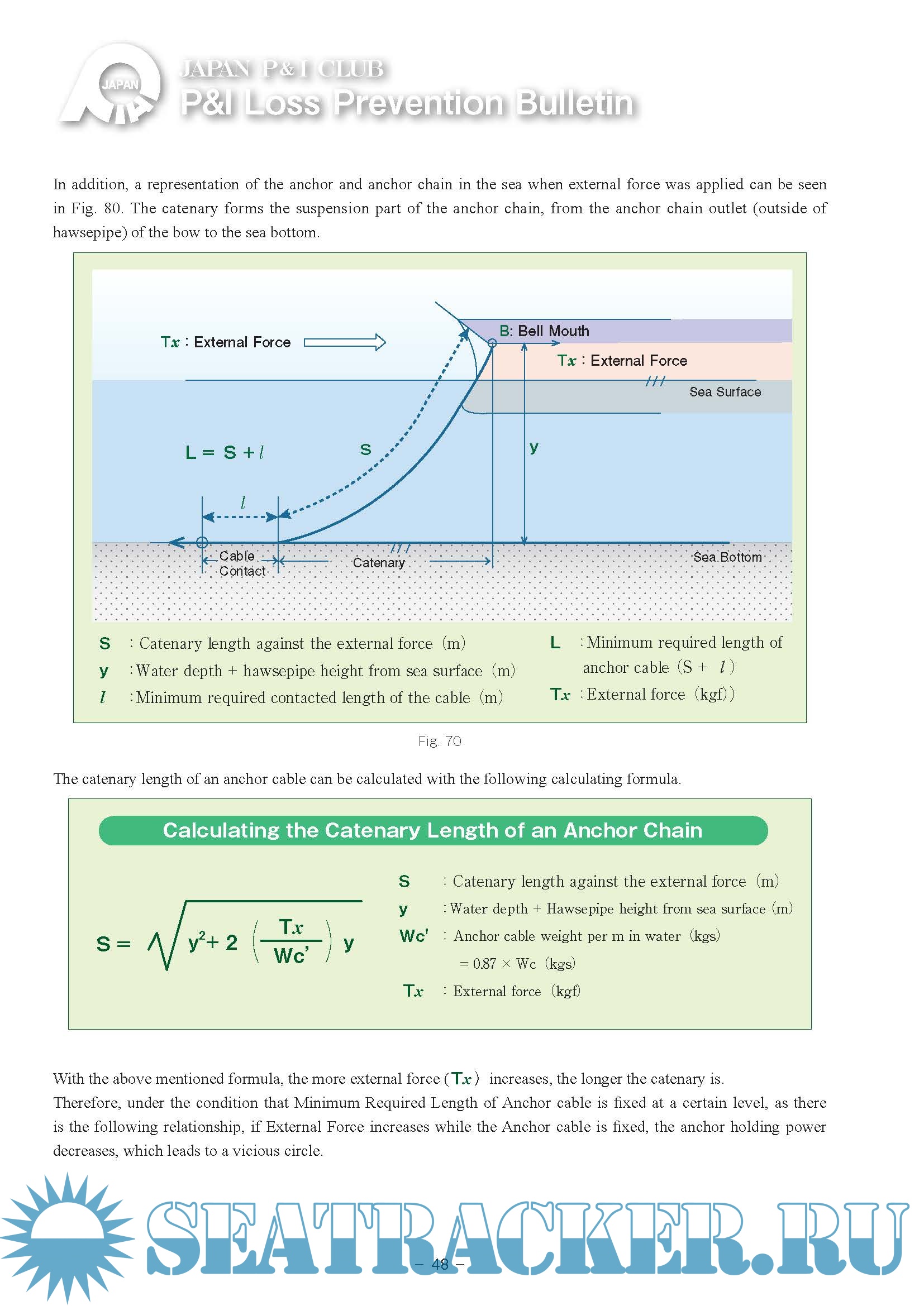 Year: 2018 Language: English Author: Japan P&I Club Genre: Bulletin Publisher: Japan P&I Club Edition: Volume 43 July 2018 Format: PDF, XLSx Quality: eBook Pages count: 66 Description: P&I Loss Prevention Bulletin | Dragging Anchor - Case Studies and Preventive Measures In the event of anchoring, it is common to carry out single anchor mooring, using one of the anchors outfitted on either side of the ship. However, due to strong winds from typhoons or violent storms, as a dragging anchor preventative measure, one must be ready to drop the snubber anchor on the opposite side (to the sea bottom), or carry out two-anchor mooring or ride at two anchors. Accidents due to a dragging anchor are not only caused by Typhoons, but also occur during gales. However, according to statistics they predominantly occur when a typhoon has just passed. First, it is necessary to understand how typhoons move. * Anchoring Holding Power Calculation in .xlsx format included.