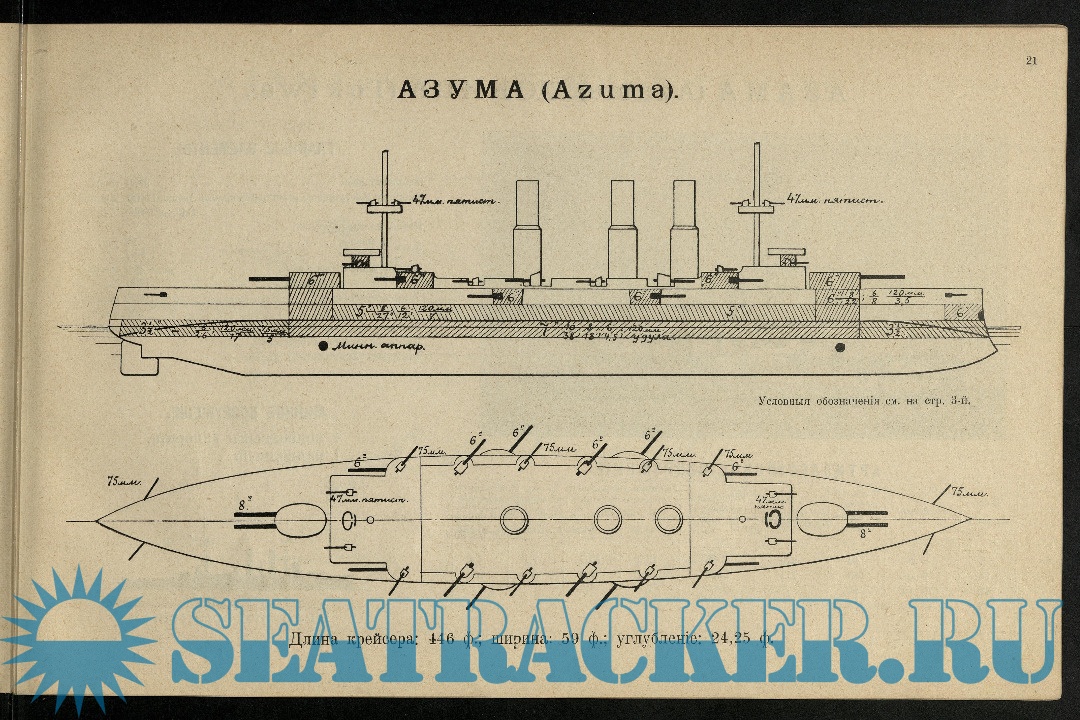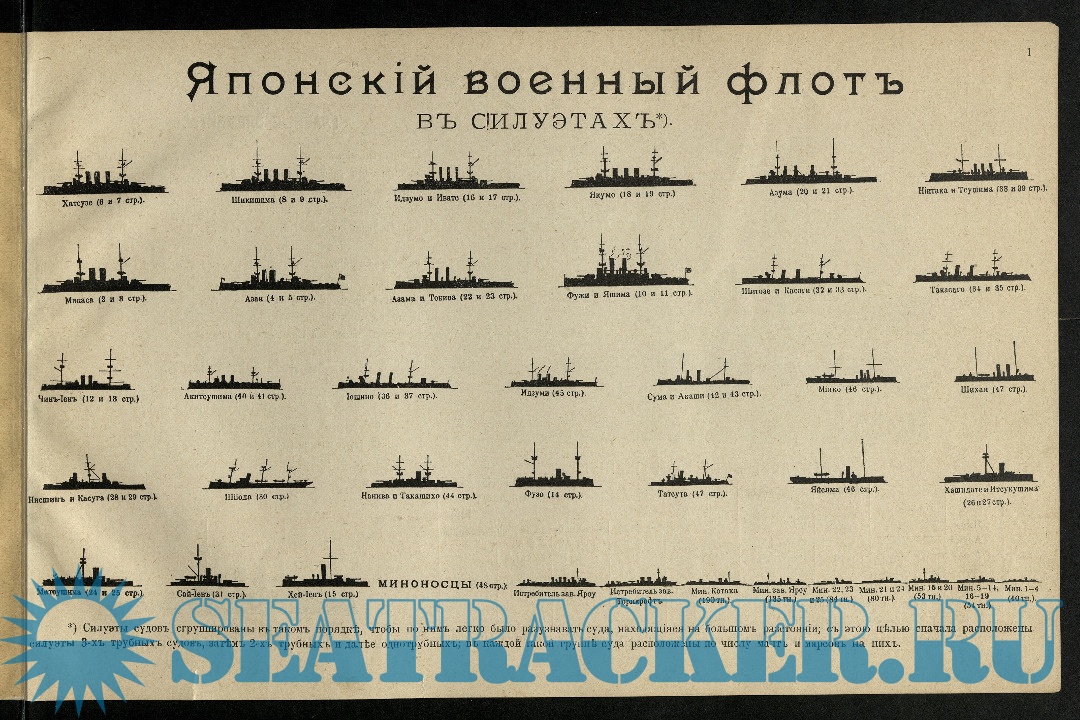 Японский военный флот. Альбом рисунков и чертежей судов, с указанием главных элементов и вооружения их