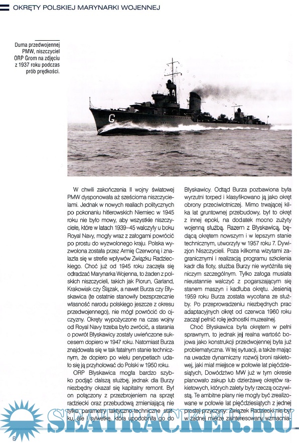 Description: The seventeenth issue of the "Okrety polskiej marynarki wojennej" series, which covers the ships of the Polish Navy, is dedicated to the Project 30bis destroyers ORP Grom and ORP Wicher.