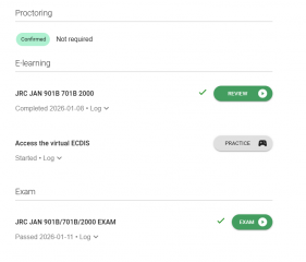 Access to Virtual ECDIS Practice: Access to the virtual ECDIS system was granted and used for developing practical skills.