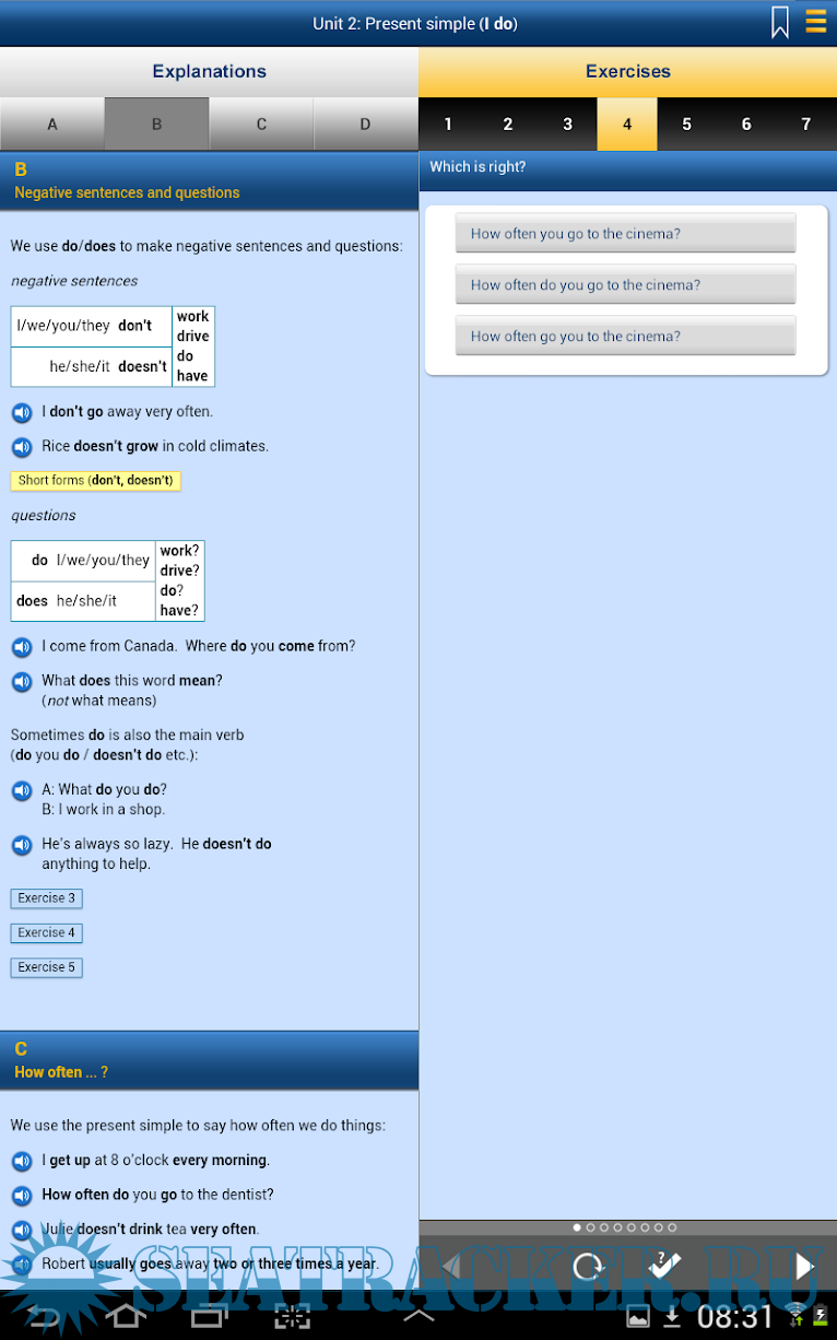 Answers to the grammar activities are marked automatically and allow you to reveal the correct answer when you make a mistake. Perfect for self-study.