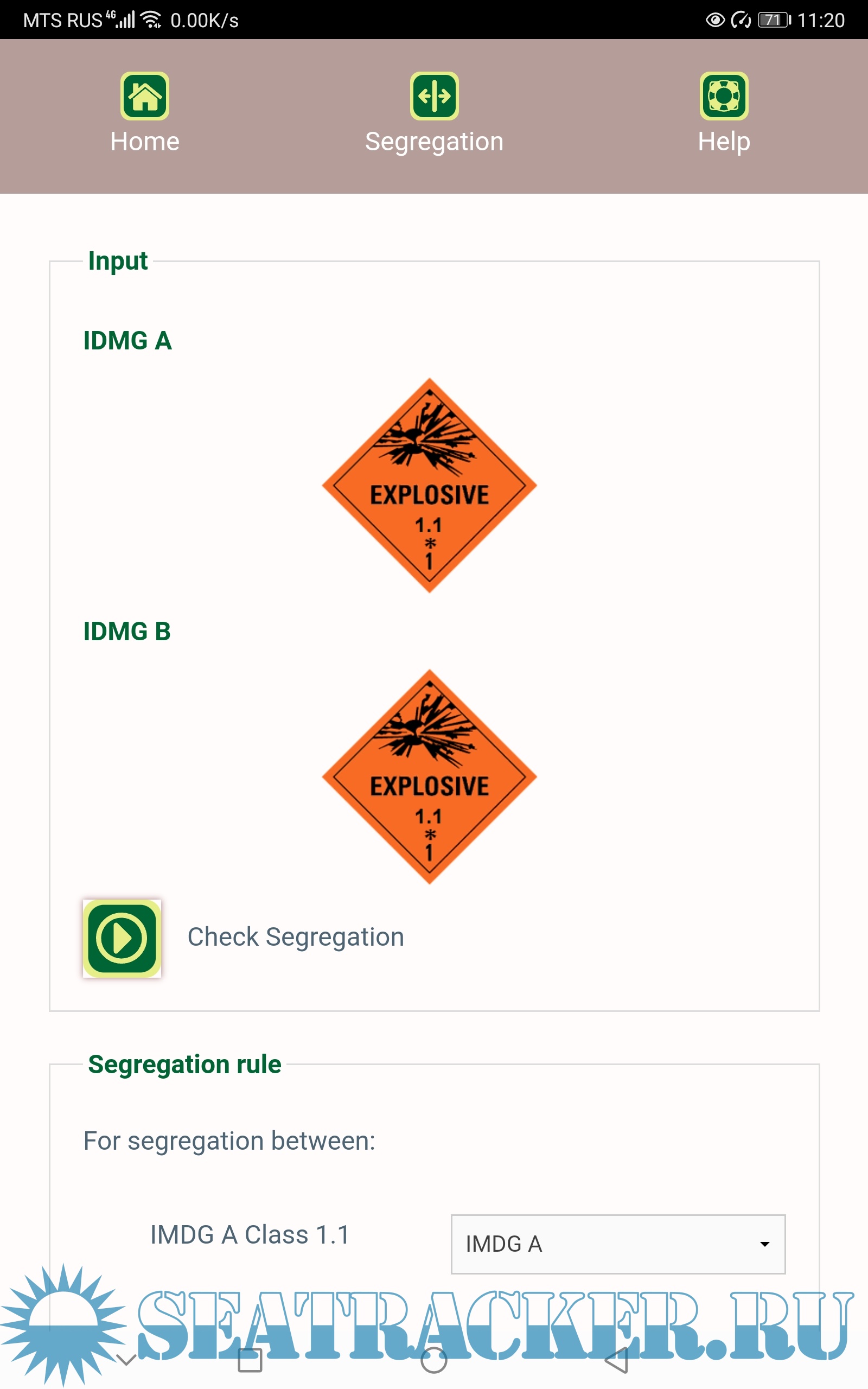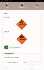 The segregation tool lets you check segregation between 2 IMO class goods and is the equivalent of the IMDG Code 37-14 Segregation Table, including the Class 1 compatibility check.