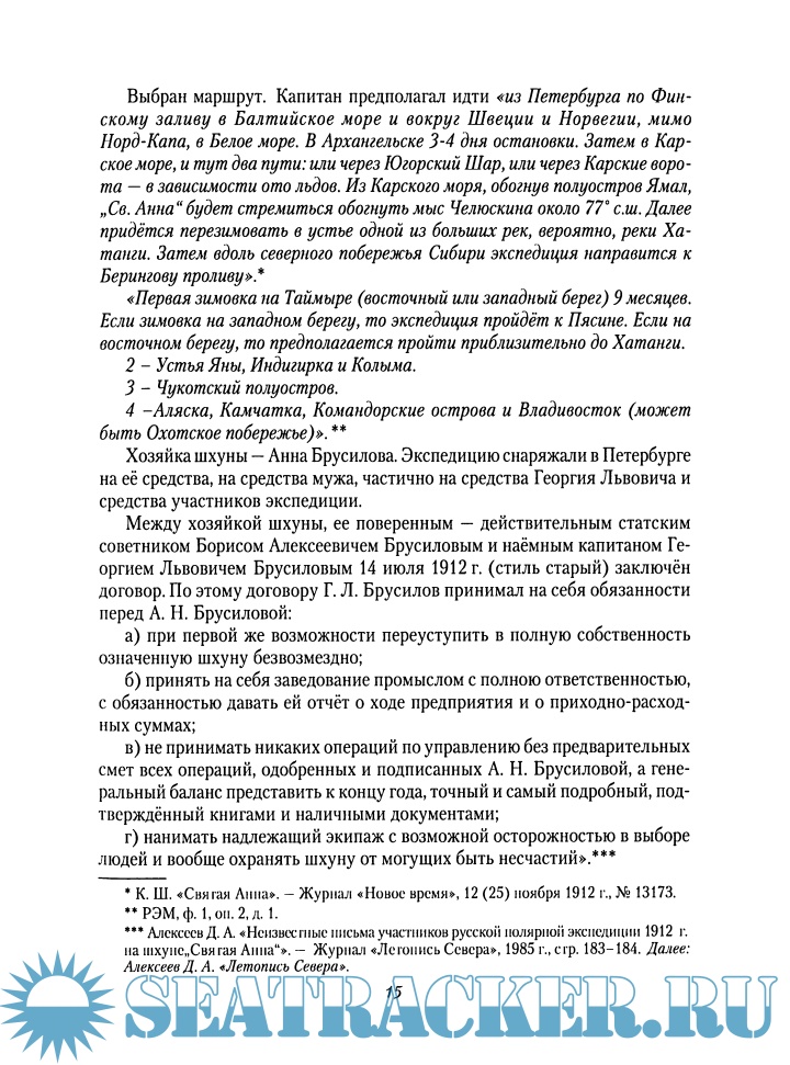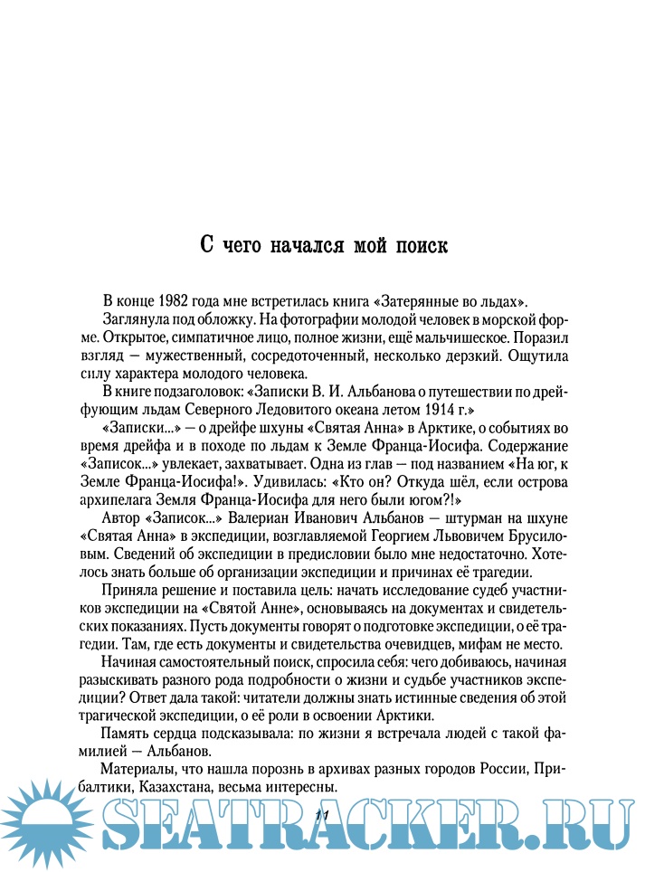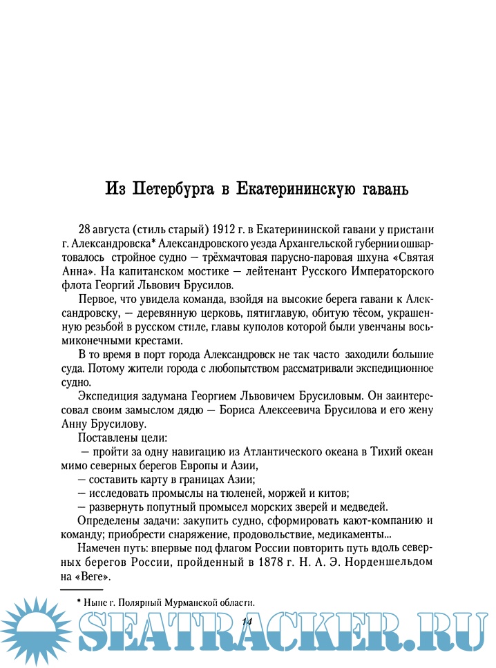 исследователей Арктики — уникальна во всех смыслах: историей создания, фактическим материалом, личностью автора, открывающимися перспективами для дальнейших исследований и теми отзывами, которые она снискала среди известных писателей, ученых и журналистов. Это восстановленная с достойными внимания скрупулезностью и точностью история героического, имеющего мало аналогов в мировом мореплавании похода в Арктику на шхуне «Святая Анна».