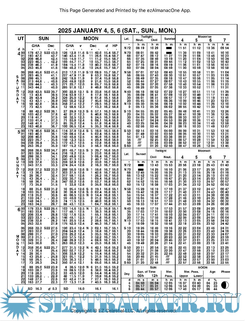 2025 EZ Celestial Nautical Almanac Lunar Supplement - EZ Celestial LLC [2024, PDF]